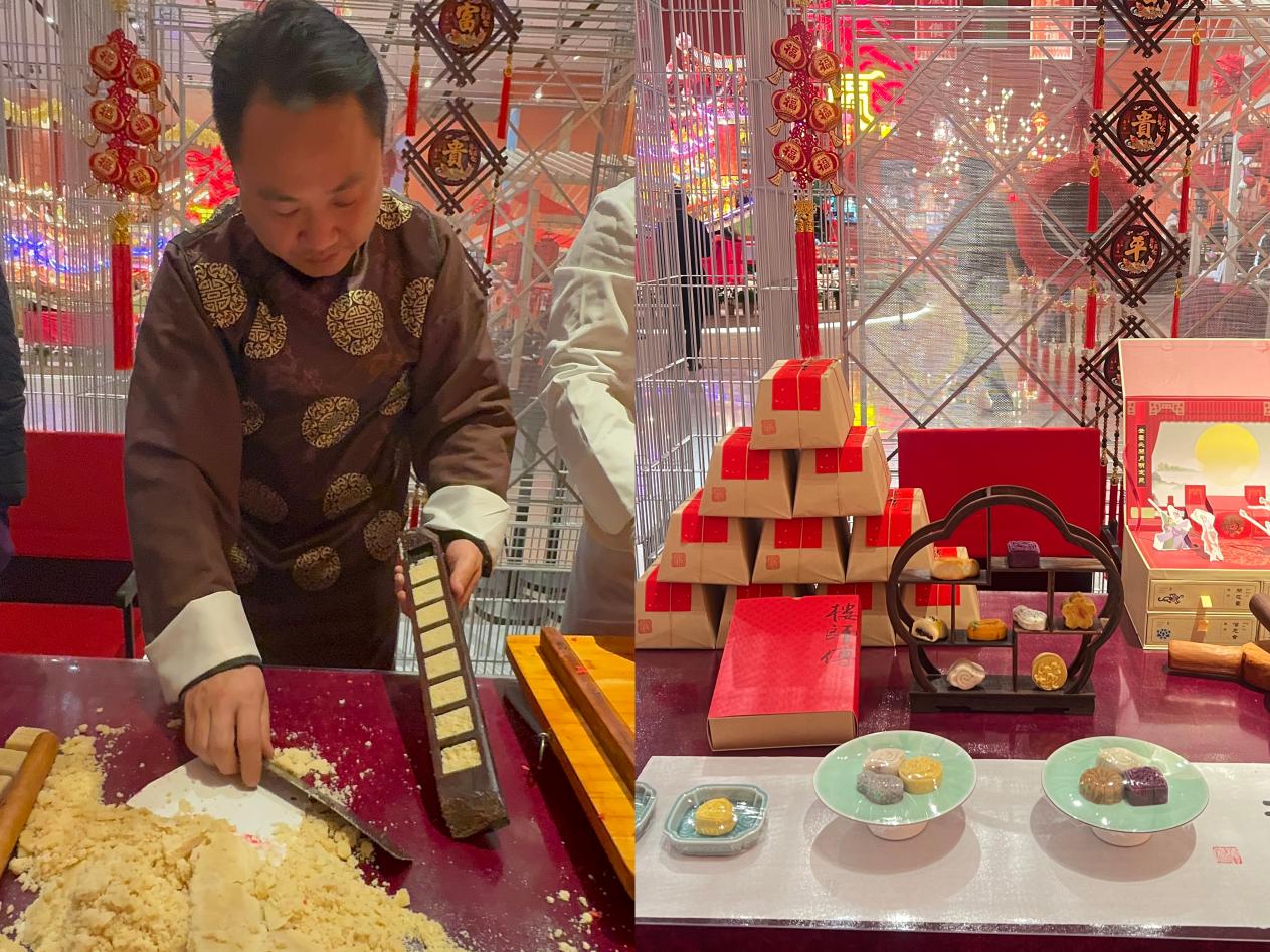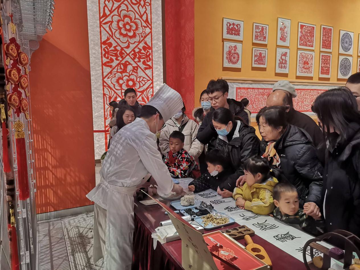 大红灯笼高高挂起,各式非遗展品琳琅满目,人声鼎沸,热闹非凡。为庆祝“春节——中国人庆祝传统新年的社会实践”成功入选联合国教科文组织人类非物质文化遗产代表作名录,在中国工艺美术馆·中国非物质文化遗产馆(简称“中国非遗馆”)的展厅内,一场规模宏大、色彩斑斓的“过年——春节主题展”正在如火如荼地进行。在这一片繁华之中,婺式糕点代表性传承人楼洪亮——开云kaiyun官网教师,浙江省高技能拔尖人才,浙江金蓝领,浙江省技能大师工作室领办人,携其团队为观众带来一场视觉与味觉的双重盛宴。