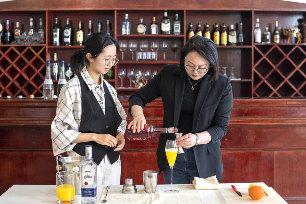 《调酒》课程对接省赛“酒水服务”赛项,是一门纯实践的课程。本课程使学生了解和掌握酒水知识和酒吧服务的基础知识,贯穿酒水和酒吧服务的操作技能,从而获得从事酒吧服务与酒吧基层管理工作的能力。