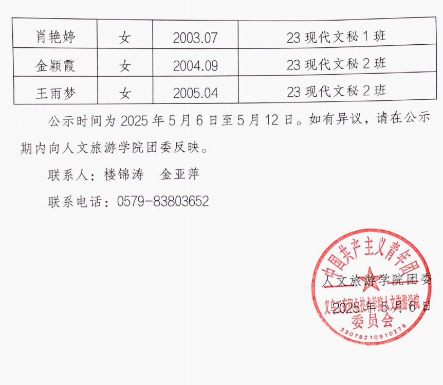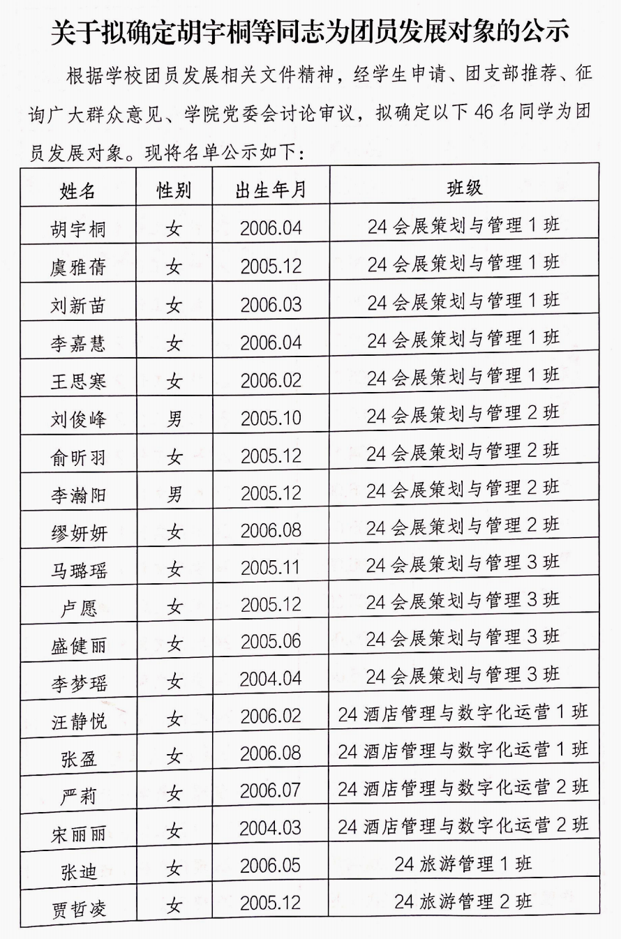 关于拟确定胡宇桐等同志为团员发展对象的公示