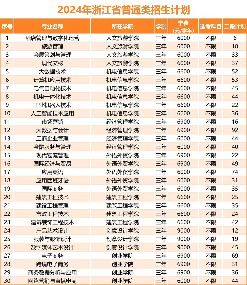 2024年浙江省普通类、艺术类二段招生计划