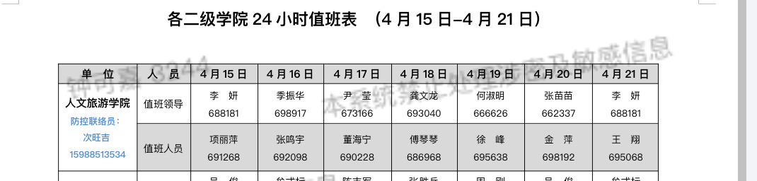 开云kaiyun官网24小时值班表(4.15—4.21)