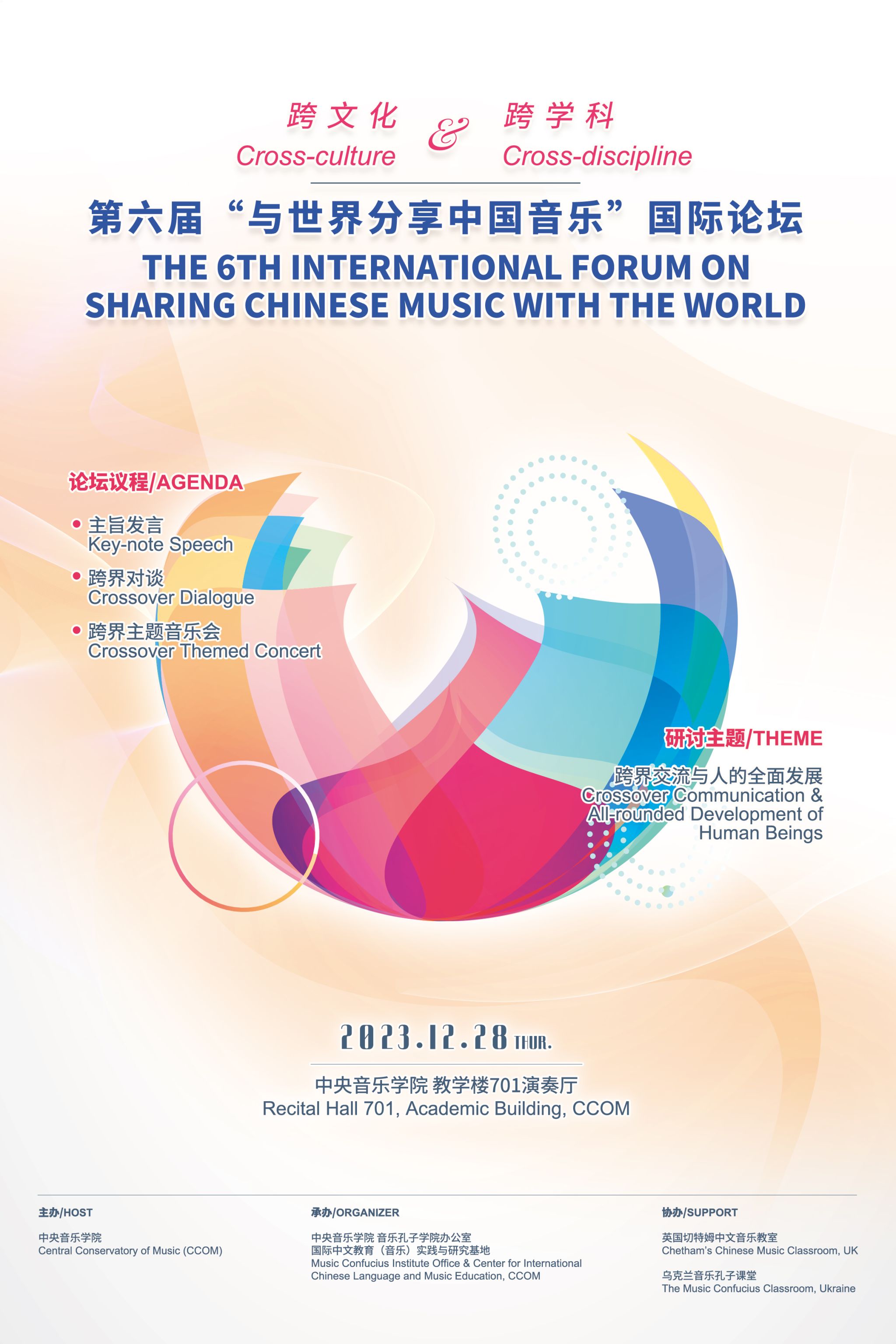 2023年12月28日,由kaiyun体育网页登录入口主办,音乐孔子学院办公室及国际中文教育(音乐)实践与研究基地承办,英国中文音乐教室、乌克兰音乐孔子课堂协办的第六届“与世界分享中国音乐”国际论坛,在教学楼701报告厅举办。
