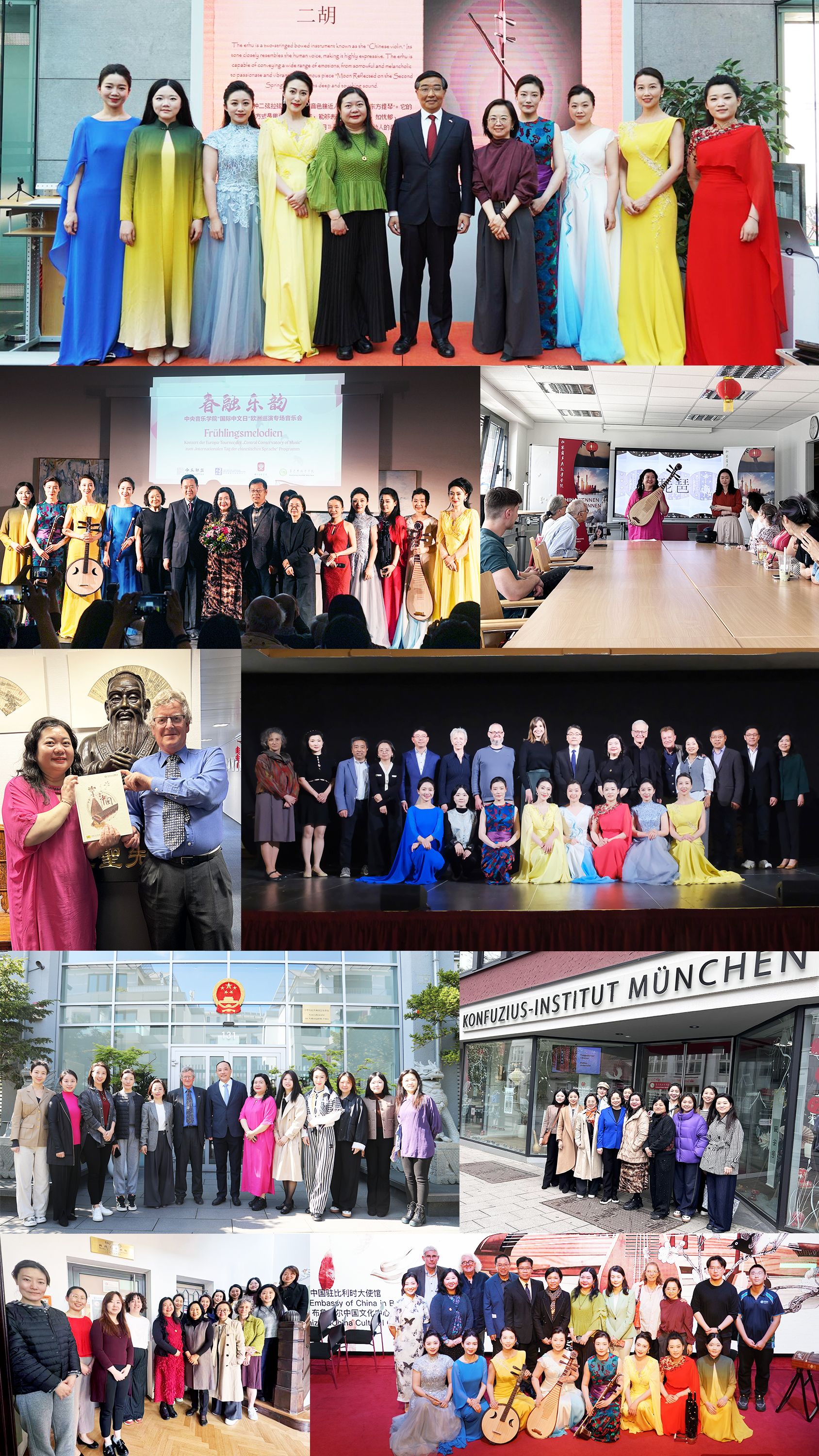 为庆祝由教育部中外语言交流合作中心(以下简称:语合中心)和中文联盟联合发起的2025年“国际中文日”活动,向世界集中展现博大精深的中华文化宝藏,4月25日至5月2日,在语合中心的支持下,kaiyun官网音乐孔子学院办公室及国际中文教育(音乐)实践与研究基地主任樊薇、副主任张乐心组织由民乐系副教授王颖、苏畅、刘小菁,及青年教师邸琳、王一、马英俊、冯天石、高欣然组成的巡演团,赴德国、比利时4城市的孔子学院举办“春融乐韵”系列专场音乐会,以高水平、高质量的专业艺术水准,细腻生动的音乐演绎,积极向上的精神面貌,让欧洲听众近距离感受到中华民族音乐的独特魅力,所到之处博得多方赞誉。