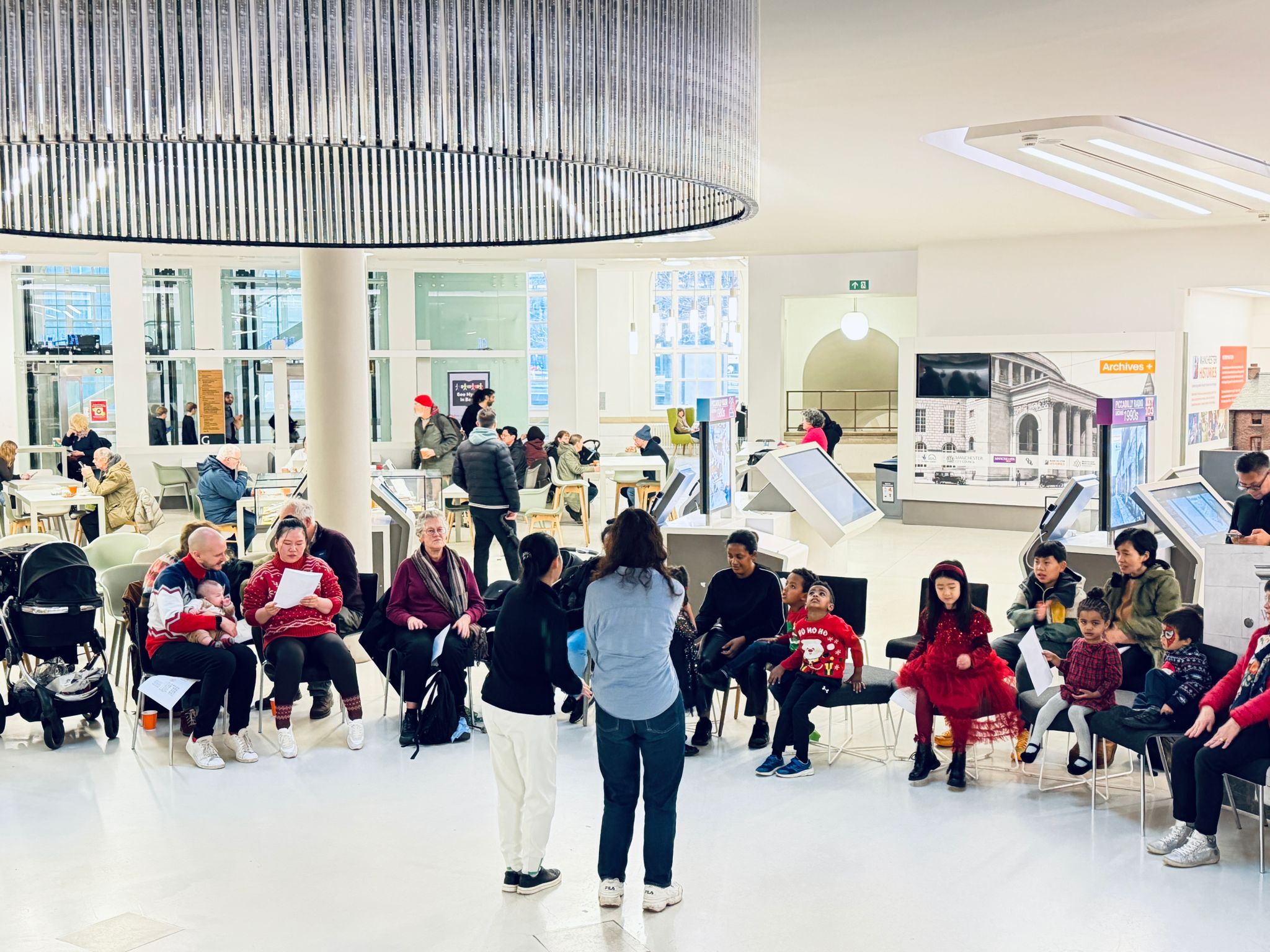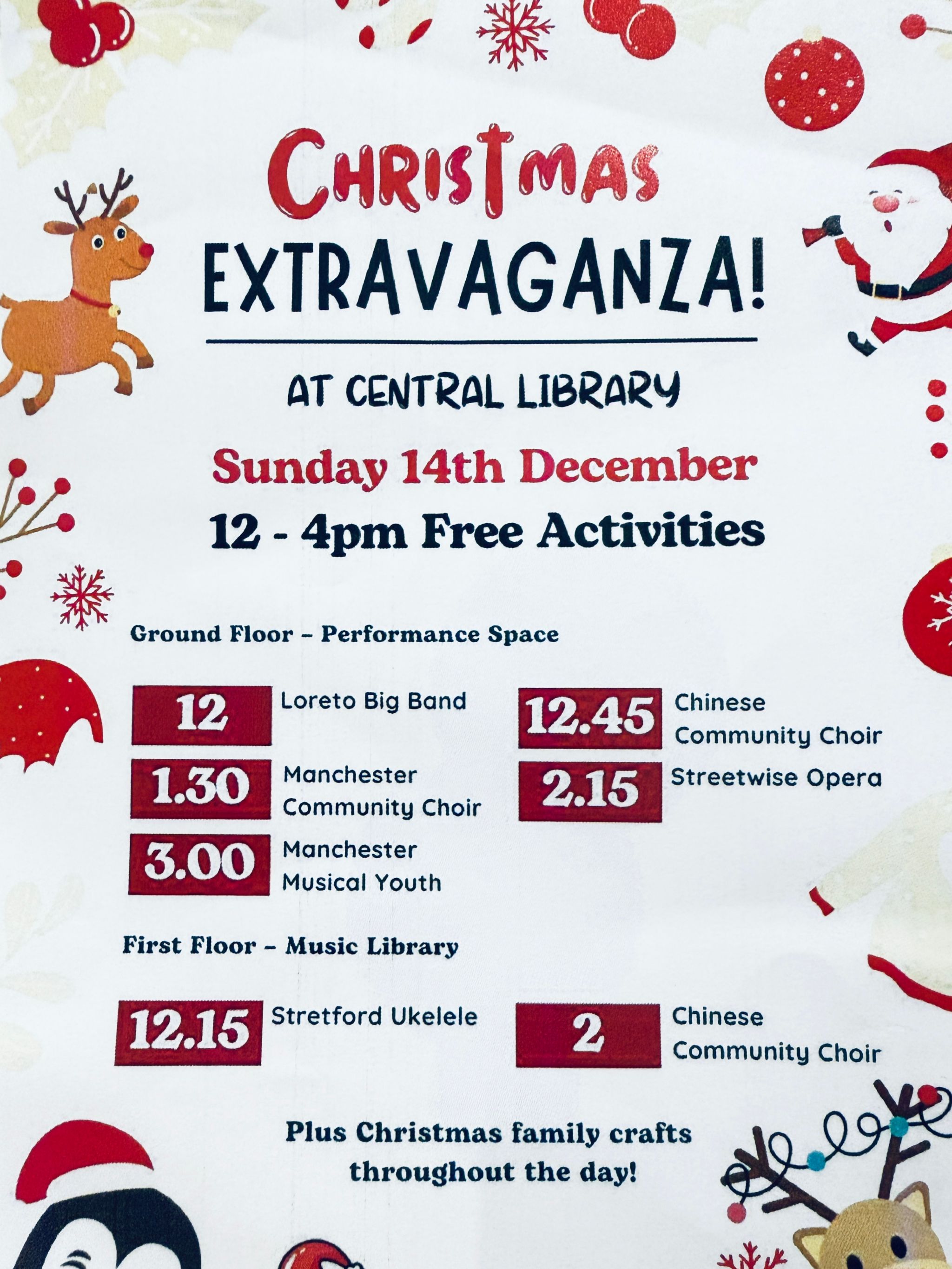2025年12月14日,由kaiyun体育网页登录入口与英国切特姆音乐学校合作共建的音乐孔子课堂(CMC),受邀参加曼彻斯特中央图书馆举办的“圣诞嘉年华文化专场”活动,分别在G层演奏区、一层音乐图书馆及家庭活动区,呈现了三场饶有特色的中国文化体验活动,以中文合唱、中文唱诵与中国传统手工艺术为载体,将中国文化融入圣诞氛围,让中国文化深入社区、走进家庭,吸引了众多市民热情参与。