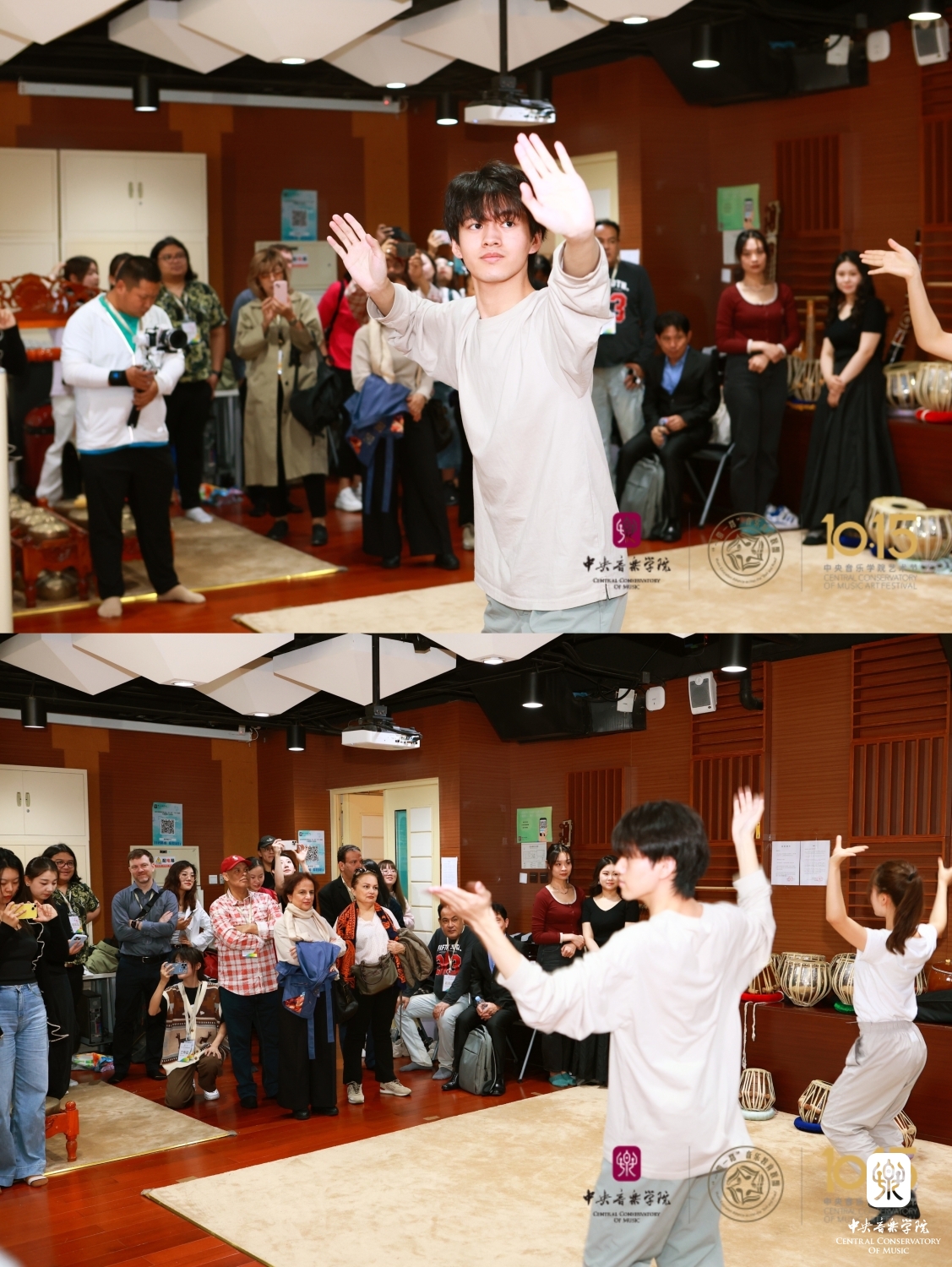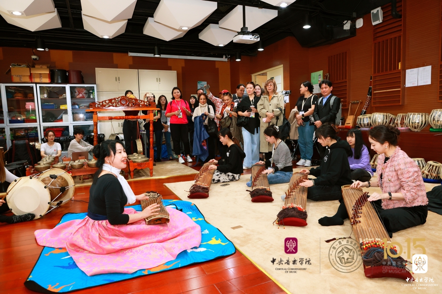 在世界音乐演奏实习中心教学楼711,韩国伽倻琴音乐和朝鲜鼓、印度尼西亚佳美兰音乐、印度塔布拉鼓、印度尼西亚传统舞蹈课程的师生在这里接连展示相关课程。