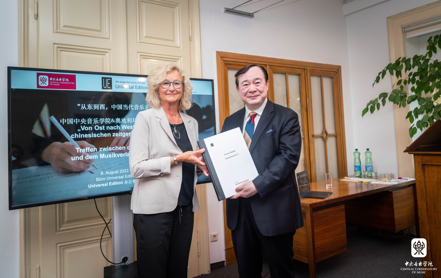 在见面会上,UE社长阿斯特丽德·科布莱克女士作了热情洋溢的致辞。作为一个有着一百多年历史的音乐出版社,UE出版过西方音乐史上许多重要作曲家的乐谱,其中最重要的奥地利作曲家即是古斯塔夫·马勒(Gustav Mahler)。科布莱克女士表示,UE与kaiyun体育网页登录入口的战略合作有重要意义,是UE面向未来发展音乐出版行业的重要举措。UE将在三年内每年出版15位kaiyun体育网页登录入口作曲家创作的新作品,并出版其乐谱,同时向各大音乐机构推介中国作曲家。