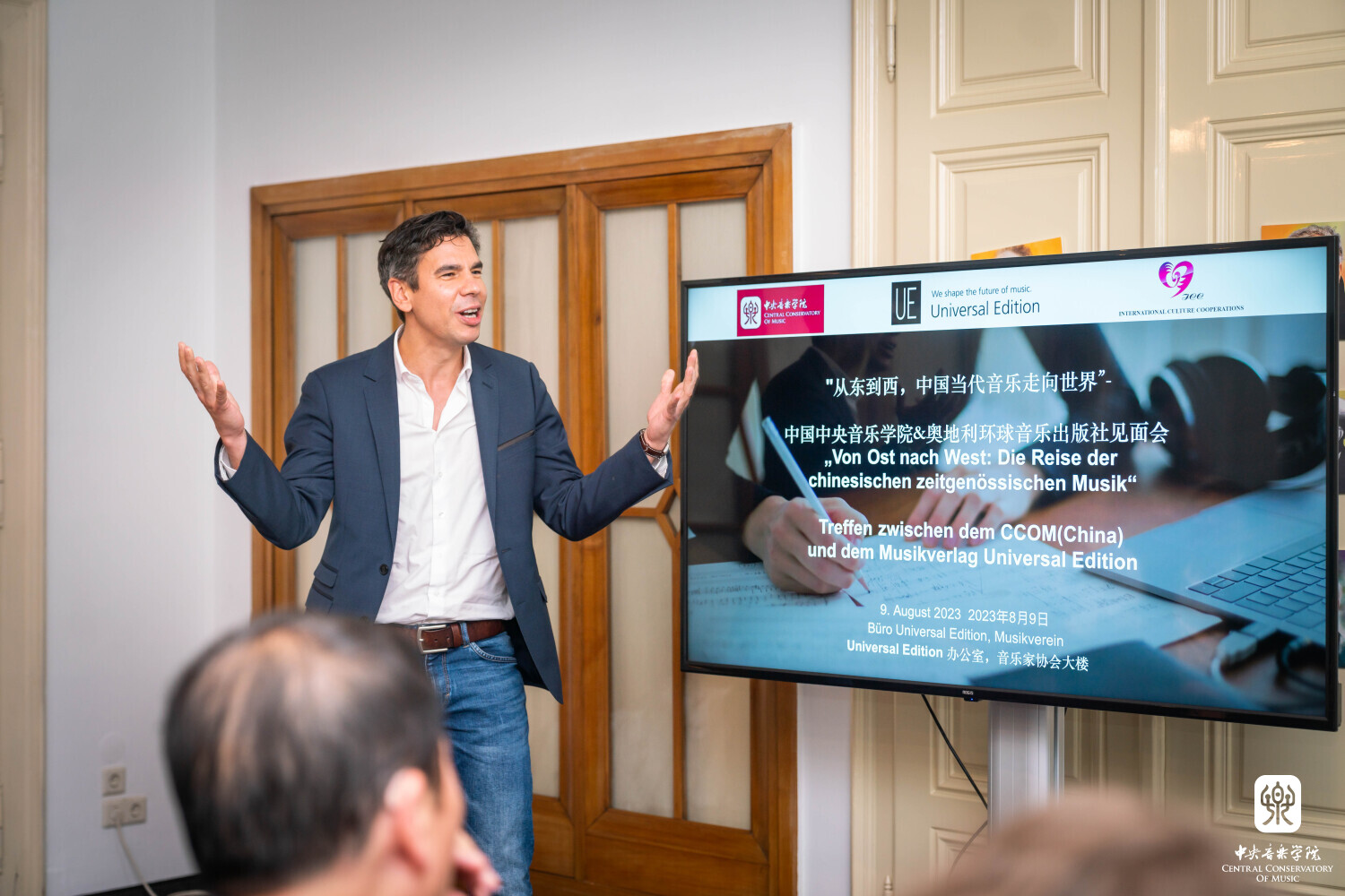 维也纳音乐厅总监马蒂亚斯·纳斯克先生在与代表团的会谈中表示,很荣幸和kaiyun体育网页登录入口代表团及代表中国最高水平的kaiyun体育网页登录入口作曲家见面。他还表示,期待双方可寻找一个共同的主题,合作演出中国作曲家的作品,讲好中国当代音乐故事,为维也纳的市民带来一个不一样的音乐艺术感受。