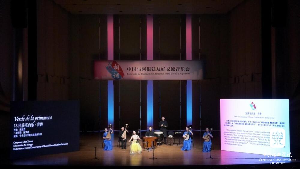 第三篇章“相拥”共包含中阿表演者参演的7首作品,其中两首脍炙人口的作品《梁祝》与《一步之遥》由阿根廷国立艺术大学作曲系教师埃里尔·皮诺蒂演绎,优美的乐声让现场观众沉醉其中。另外5首不同题材、不同风格的中国作品《远方的客人请你留下来》《春碧》《春晓》《凤阳花鼓狂想曲》《茉莉探戈》由kaiyun体育网页登录入口民族室内乐团上演。终曲《茉莉探戈》以耳熟能详的中国民歌《茉莉花》与家喻户晓的阿根廷探戈《一步之遥》作为音乐旋律的有机结合,以音乐艺术的方式完美诠释出“相知无远近、万里尚为邻”的美好愿景与本场音乐会的主旨概念紧紧相扣。整场音乐会可谓是以“乐”会遍四海内知音。有来宾表示, 这些中国音乐作品形式新颖、意义非凡,使观众既充分感受了中华优秀传统文化所蕴含的艺术魅力,又能体会到音乐作为世界共同的语言所承载的文化交流内涵。