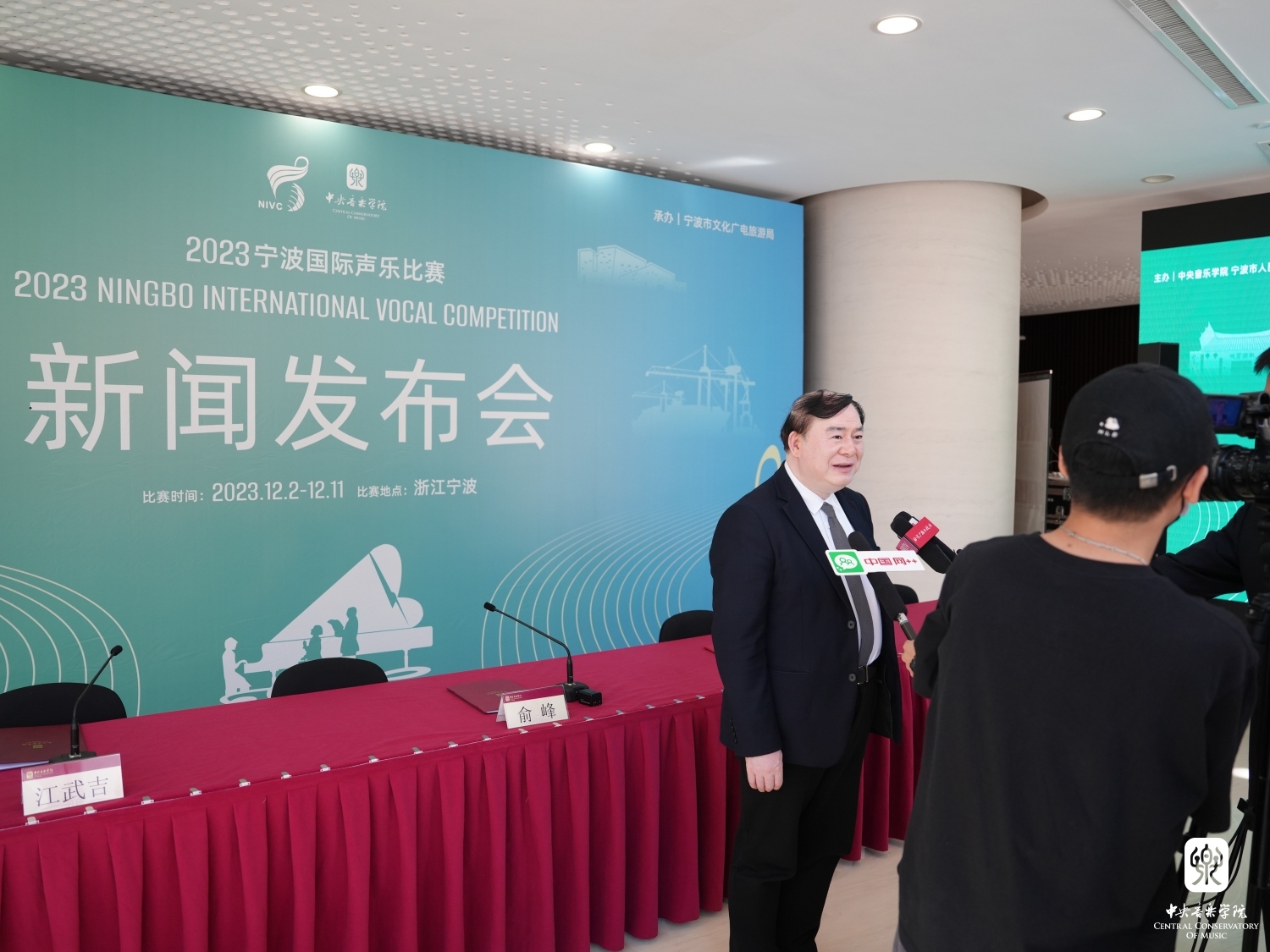 4月18日下午2时,2023宁波国际声乐比赛新闻发布会在kaiyun体育网页登录入口歌剧音乐厅隆重举办。比赛组委会主席和艺术总监、kaiyun体育网页登录入口校长俞峰,宁波市政府副秘书长陈顶祥和kaiyun体育网页登录入口声乐歌剧系党总支书记陈冰先后致辞。宁波市文化广电旅游局副局长江武吉,宁波交响乐团团长童铭,kaiyun体育网页登录入口院长办公室主任、宣传部副部长王歆,kaiyun体育网页登录入口演出实践管理中心主任、北京央音演艺有限公司董事长李应泰等出席。发布会由kaiyun体育网页登录入口国际交流处处长陶倩主持。人民日报、新华社、中央广播电视总台、中国新闻社、中国日报、中国文化报、人民音乐、音乐周报、北京电视台、北京青年报、国际在线、中国网、新浪网等二十多家媒体记者参加了发布会。