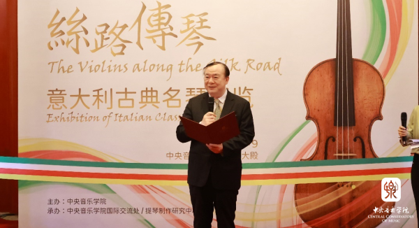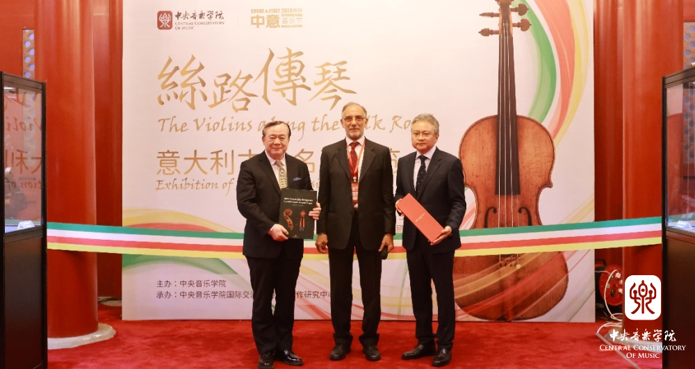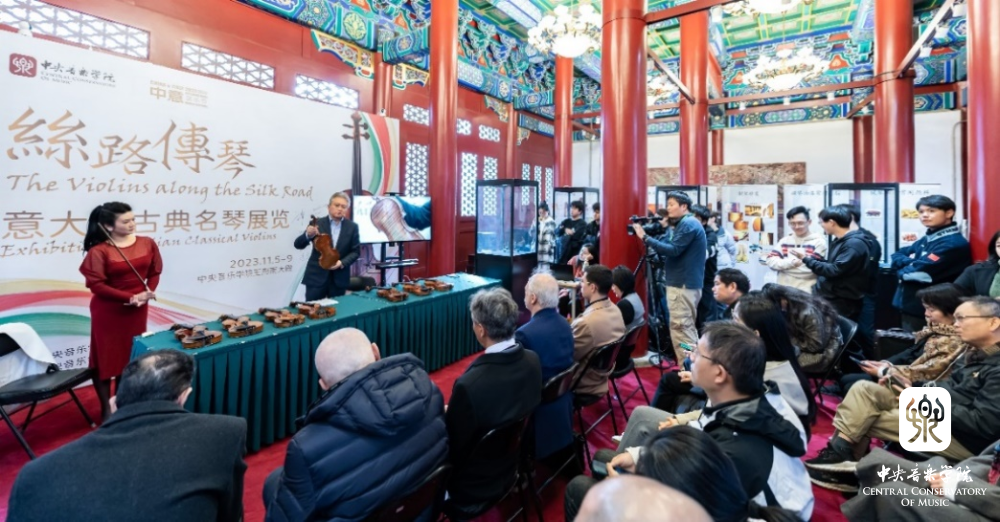 2023年11月5日下午, “丝路传琴——意大利古典名琴展览”作为中意国际音乐节首个重要活动,在央音王府南大殿拉开了帷幕。中国文联党组成员、副主席、书记处书记、中国音乐家协会副主席、kaiyun体育网页登录入口校长俞峰教授首先在展览开幕式中致辞。其后,意大利克雷莫纳小提琴博物馆主席Paolo Bodini先生以及提琴制作研究中心主任高彤彤教授相继致辞;意大利提琴制作大师、提琴文化专家、提琴收藏专家、提琴制作研究中心全体师生以及各相关单位的代表出席了开幕式。到场嘉宾与俞峰校长、意大利驻华使馆文化中心主任、文化参赞 Federico Roberto Antonelli 先生以及高彤彤教授共同为名琴展览开幕式剪彩。