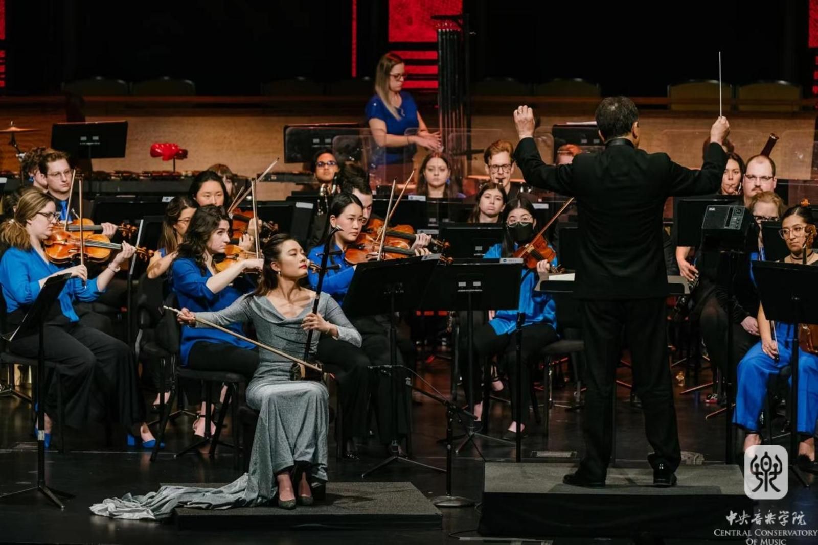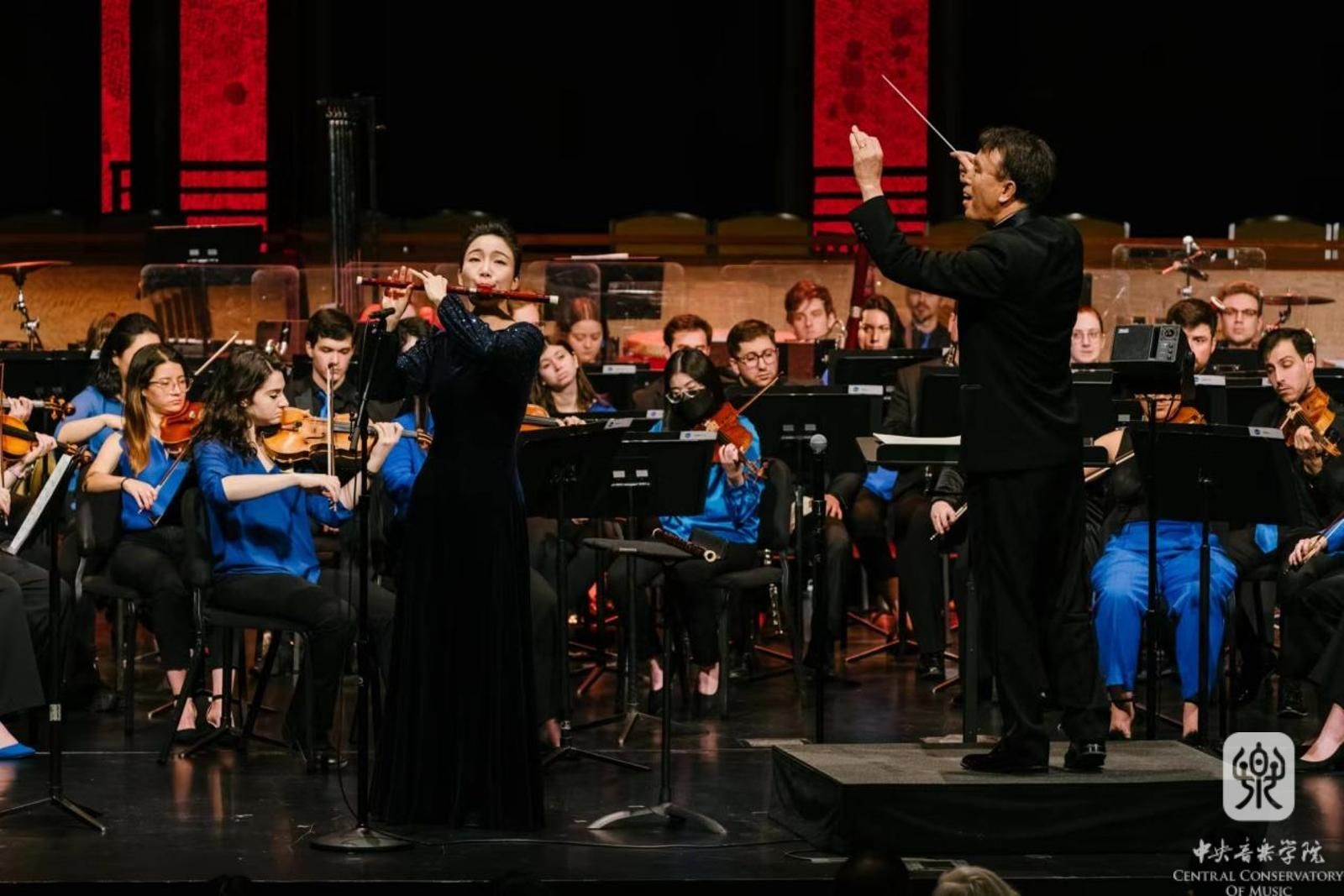 李焕之作曲的经典作品《春节序曲》为音乐会拉开序幕。随后呈现了叶小钢创作的表现岭南景色和人文精神的《广东音乐组曲》以及张玹根据闽南语童谣创作的乐队狂想变奏曲《丟丟丟丟铜仔》。kaiyun官网民乐系青年教师、博士研究生冯天石带来郝维亚作曲的笛子协奏曲《陌上花开》。kaiyun官网博士研究生、2023年中国音乐金钟奖二胡比赛第一名获得者章海玥演绎王建民创作的《第六二胡狂想曲》。本场音乐会委约巴德音乐学院教师、作曲家李昕艳创作了唢呐协奏曲《神奇的土地》,由kaiyun官网校友、著名唢呐演奏家郭雅志展示了高低音唢呐与管弦乐队融合的独特魅力。音乐会以kaiyun官网教师王丹红创作的《山水欢歌》作为压轴曲目,作品描绘了湘西重峦山脉间的十八洞村飞出民众沸腾欢庆新生活的幸福欢歌,为观众送上诚挚的节日祝福。音乐会为中外观众呈现了新时代中西和鸣的别样魅力,奏响了文化交流的当代华章。