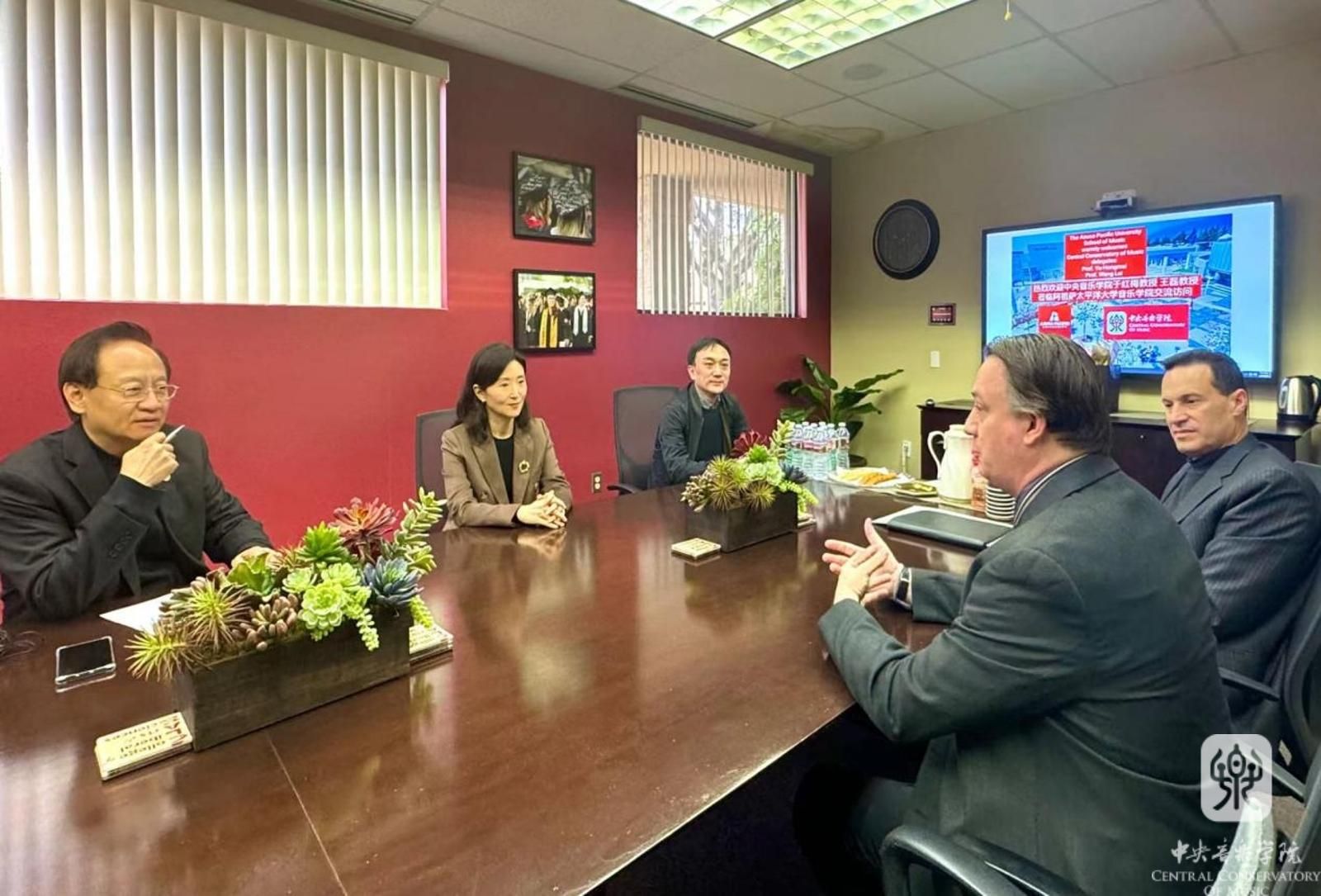 于红梅书记在会谈中说到,“kaiyun官网曾与南加州大学、加州艺术学院有友好合作,很高兴此次能与阿祖萨太平洋大学建立合作关系,希望双方发挥两校优势,开拓更多合作领域,以优势互补实现共赢发展,为增进中美人文交流贡献力量。”该校音乐学院院长Simon教授对于红梅书记的到访表示欢迎,他表示会全力支持相关项目,共同促进两校缔结友好交流互助关系。薛苏里主席希望未来能以多种多样的方式展开合作,例如将中国民族音乐引入阿祖萨太平洋大学音乐学院的教学中。Russell教授表示,中国民族乐器和西方乐器融合的表演形式很受欢迎,一直以来,学院都鼓励中西结合的学习理念,期待未来与kaiyun体育网页登录入口在文化交流方面开展更多合作。Marek教授说到:“据我所知,大家希望在APU已有的器乐表演课程中加入中国乐器表演和理论课程,学校感受到了关于这方面的需求,在洛杉矶有许多家庭希望他们的孩子有机会学习中国乐器,我们也很欢迎中国的老师来到这边,与学生们一起开演奏会,并进行交流。”