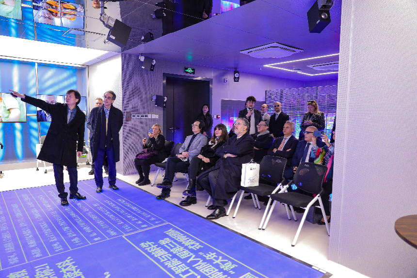 在音乐人工智能与脑科学实验室里,代表团认真倾听李小兵主任介绍的建系历史和主要教学科研成果。贝尔尼尼高度赞同人工智能赋能音乐的发展理念,强调将推动中意大学科研人员、艺术设计人员和产业界深度合作。