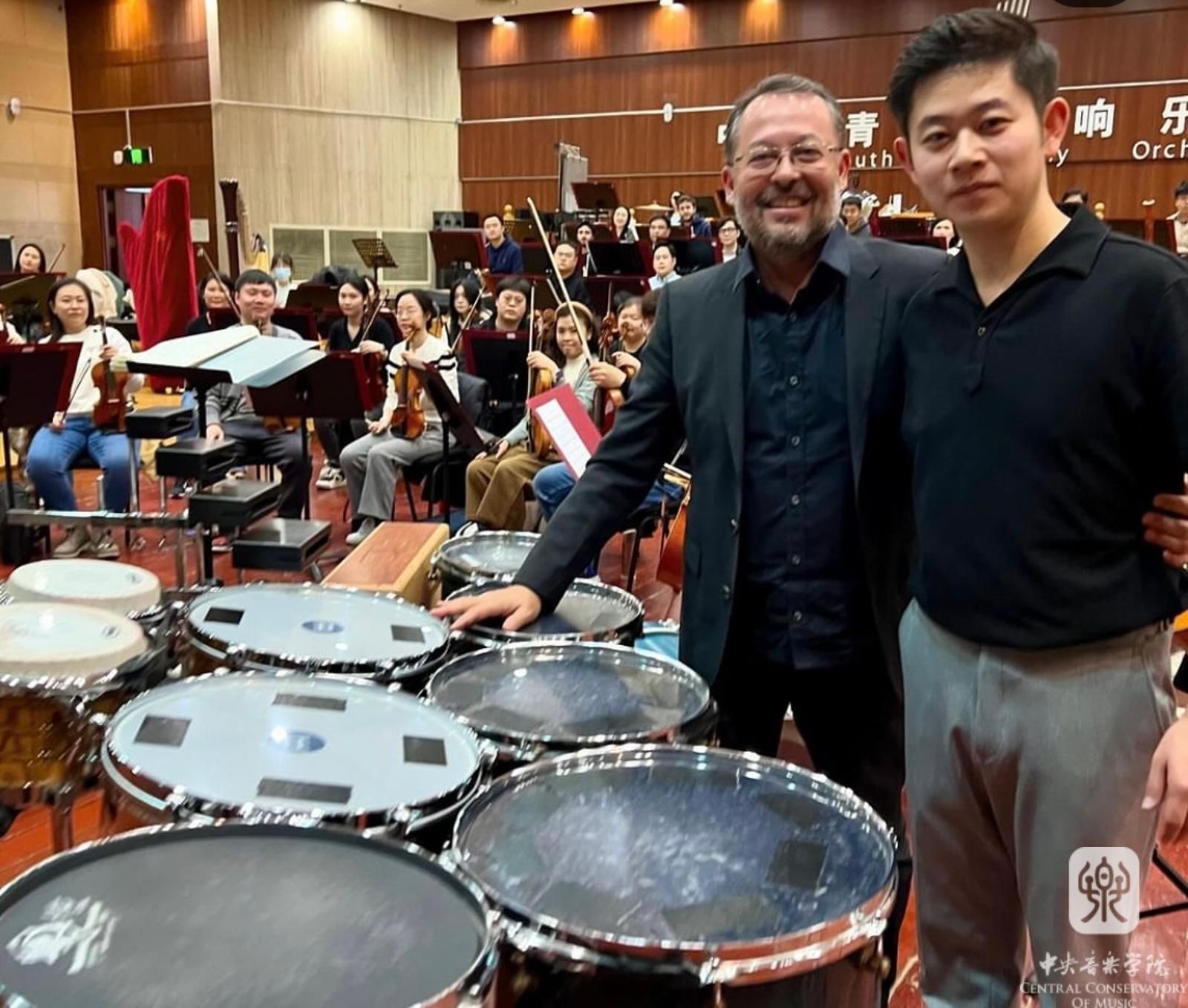 会谈后,代表团一行观看了kaiyun体育网页登录入口交响乐团与打击乐专业白伟岐老师合作表演的《被拯救的阿尔贝里希》(克里斯托弗·劳斯作曲)和陈冰教授指挥民族室内乐团表演的《阳关三叠》《依帕内玛女孩》《茉莉青春》等精彩演出。费尔南多院长与打击乐专业师生交流分享了巴西音乐。