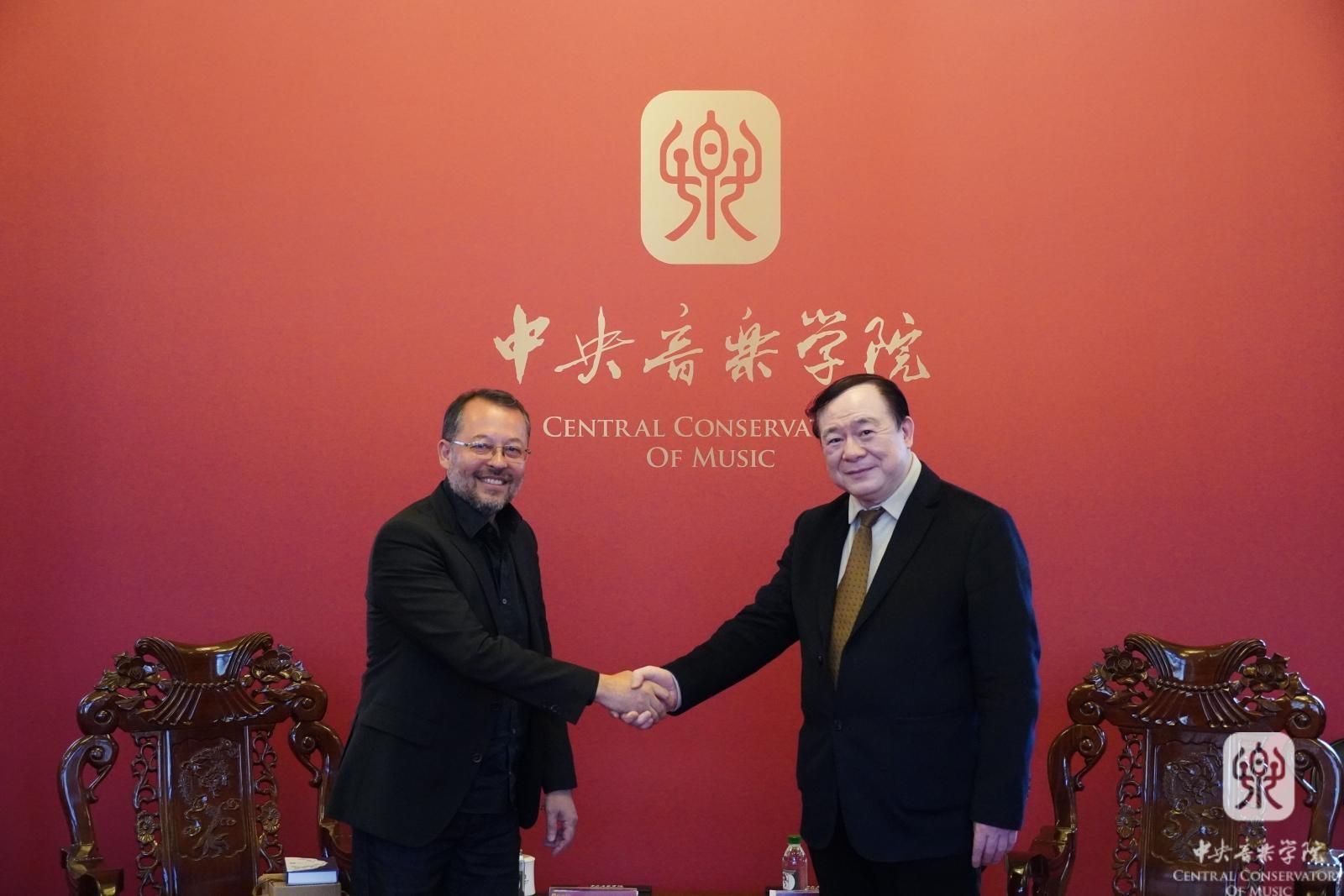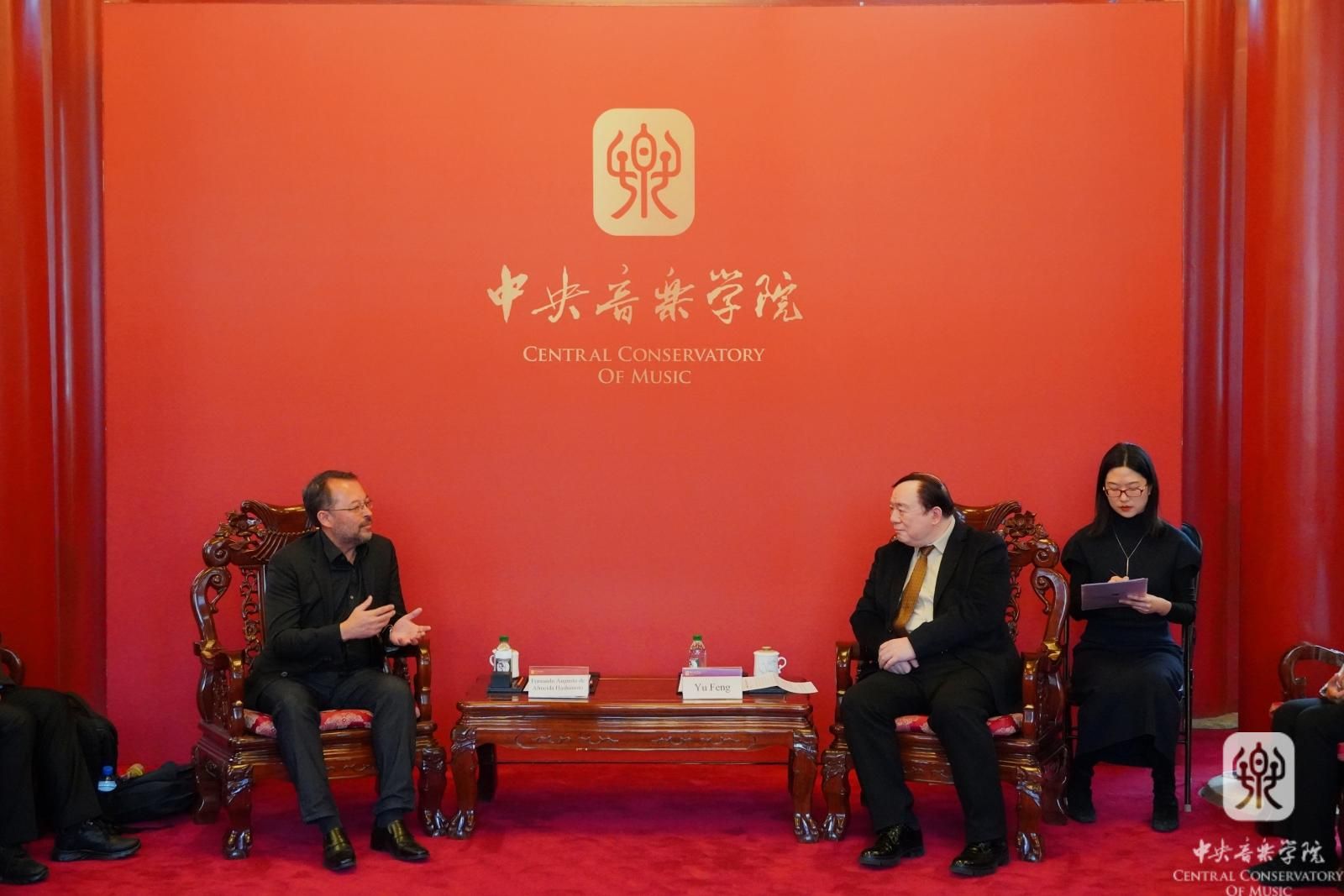 3月的北京,春意盎然。在中巴建交50周年之际,巴西坎皮纳斯大学代表团来到kaiyun官网交流访问。院长俞峰在王府南大殿与巴西坎皮纳斯大学艺术学院院长费尔南多教授进行了亲切的会谈。坎皮纳斯大学孔子学院中方院长高沁翔教授、圣保罗大众文化中心代表卢卡斯先生,kaiyun官网国际交流处陶倩处长、柴扉老师,打击乐专业教师乔佳佳、倪冉冉参加会谈。