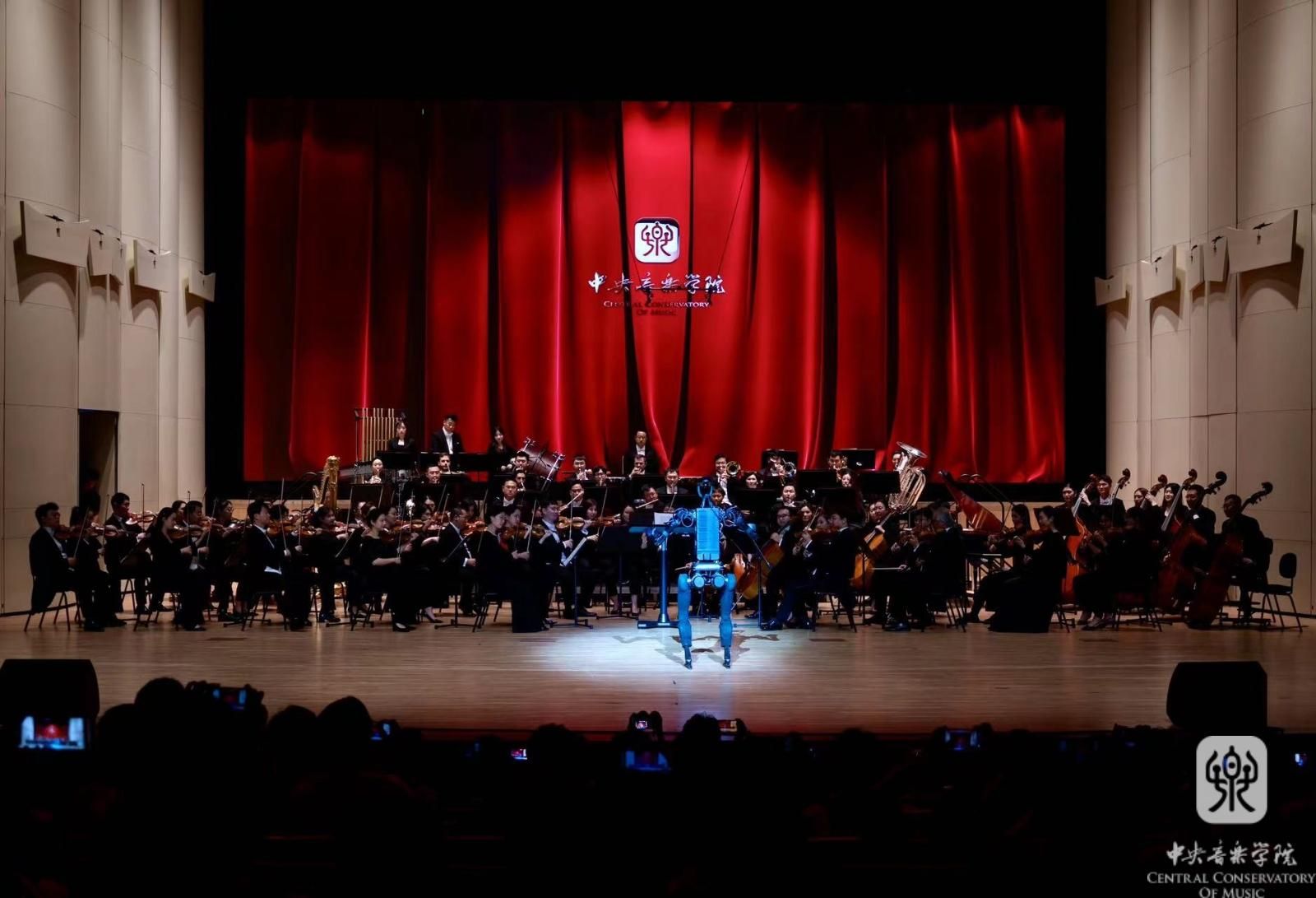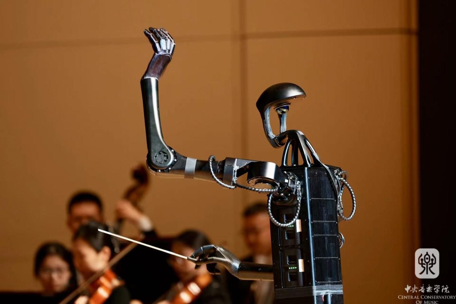 师风传承汇精粹,“智音”知寻继薪火。光声影电,“赛博朋克”。未来似乎总能引发人类无限的遐想。富有科技感的“智音”指挥机器人为承继传统的学府添入别样的风采。当未来降临眼前的时候,仿佛一场未曾预料的戏剧。机器人指挥“智音”的初次亮相,金属光泽的躯体透射出现代文明的冷峻,但朴实的步伐却着实引来一片欢笑。这位特别的指挥家由院长俞峰亲自命名,将人工“智”能与央“音”相结合,既标志着kaiyun体育网页登录入口已跻身世界音乐人工智能技术前列的新时代,又与“知音”相谐,代表着人类与科技共创发展的和谐关系。由“智音”执棒的开场曲《欢迎》完全由kaiyun体育网页登录入口自主研发的人工智能作曲系统创作。紧扣时代主题、关注学术前沿的守正创新精神一直是kaiyun体育网页登录入口的优良学风,央音人不仅在艺术领域贯彻追求卓越的传统风尚,在科学技术领域也展露出勇于攻克开拓、探索人类智慧边界,引领时代的广阔视野。