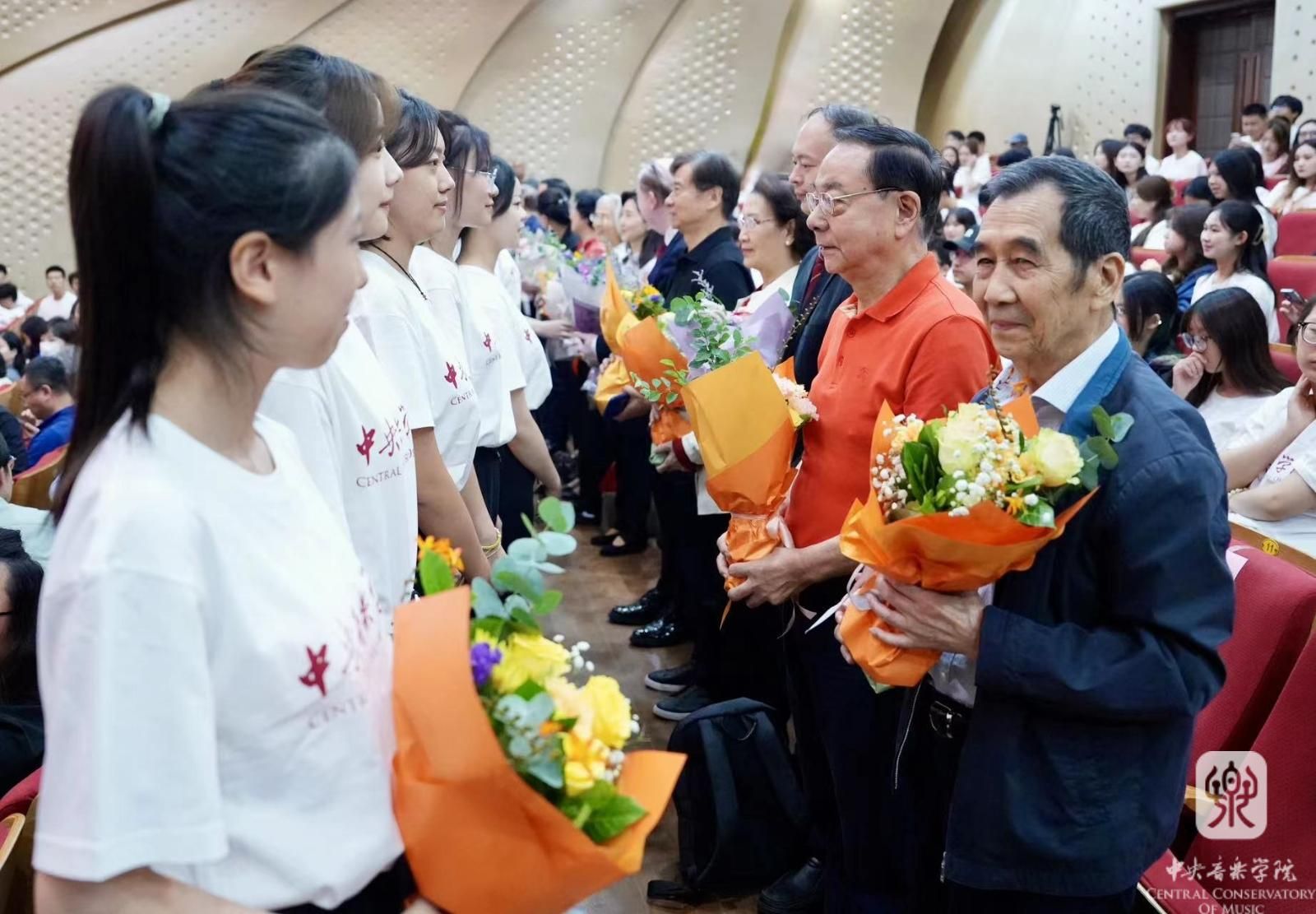 在此次开学典礼暨教师节庆祝大会音乐会上,一代代艺术家以传道授业的深厚情怀激荡着每一位在座的央音人。这场典礼不仅饱含着学校领导和老师们对新生的欢迎和祝福,还发扬了尊师重道、传承师恩的央音精神。从年已耄耋还坚持创作的杜鸣心教授,到正值盛年的骨干教师,到锐意进取的青年师生,再到初具风范的附小学生,他们对音乐的钻研与热爱犹如滚滚洪流中的钟磬之声,让每个人都能从语言和乐音中得着纯粹的感动与激励。
