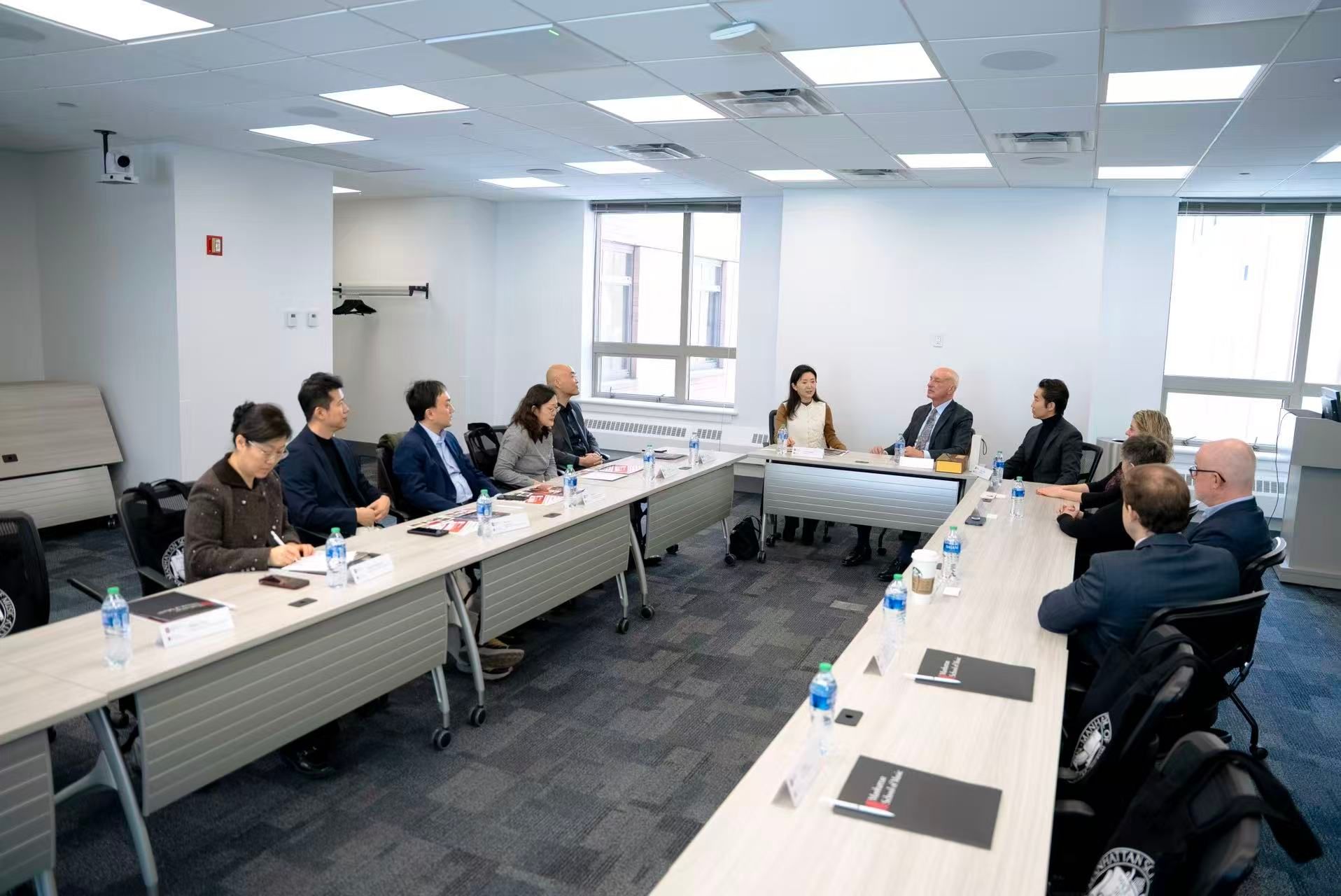 代表团参观了曼哈顿音乐学院的校史陈列与现代化教学设施,包括音乐厅、远程教室等,实地了解了其教学环境与实践平台。在会谈中,双方围绕音乐表演人才的精细化培养、课程体系建设、艺术实践机制等专业议题进行了深入交流。