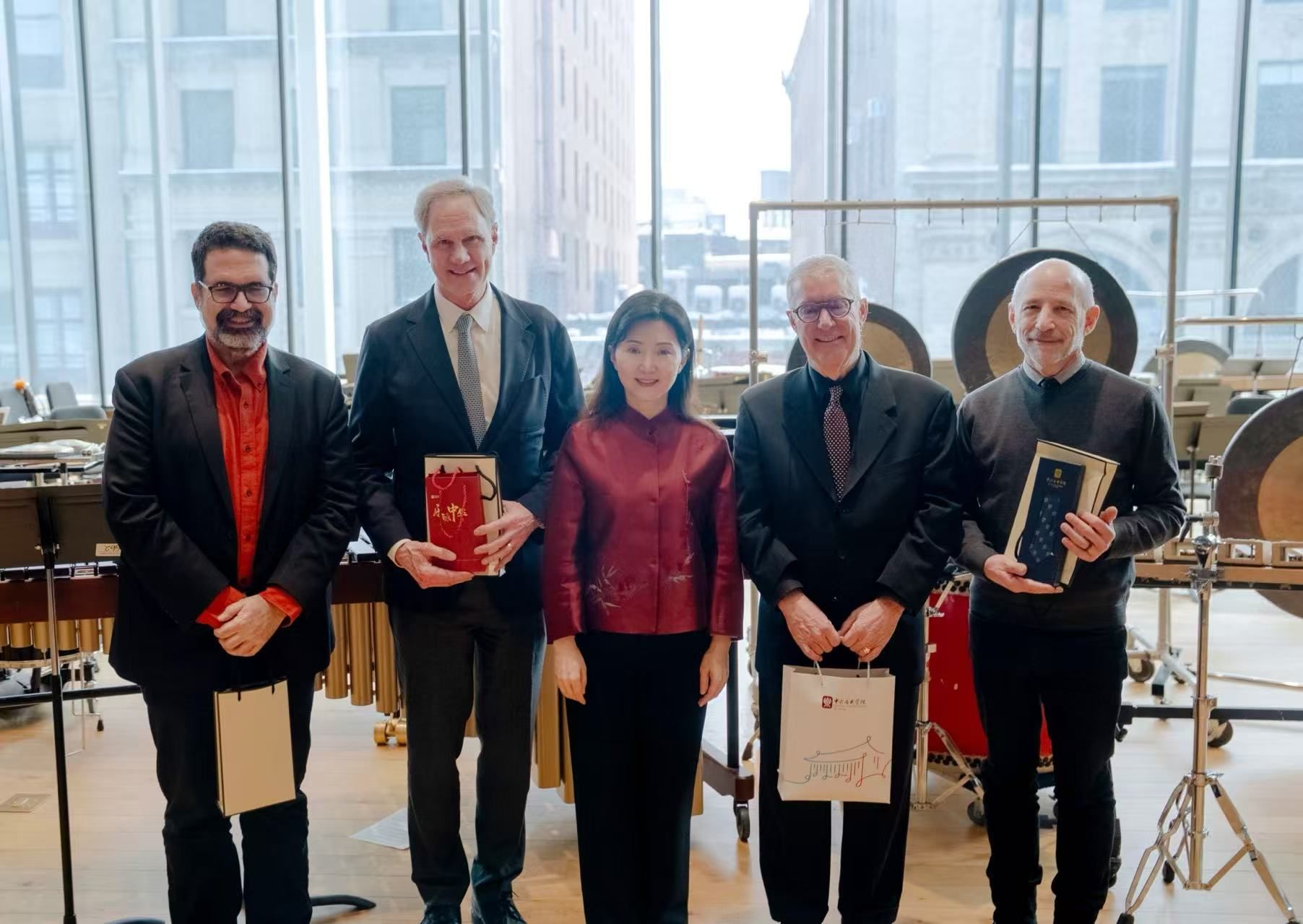 曼哈顿音乐学院院长James Gandre首先对“金钟之星”艺术团前一日在卡内基音乐厅的成功演出表示祝贺,并高度赞赏中国民族音乐的独特魅力。他认为,在当今世界,音乐作为跨越文化的纽带,对于促进理解与和平具有不可替代的作用,此类深度对话尤为珍贵。