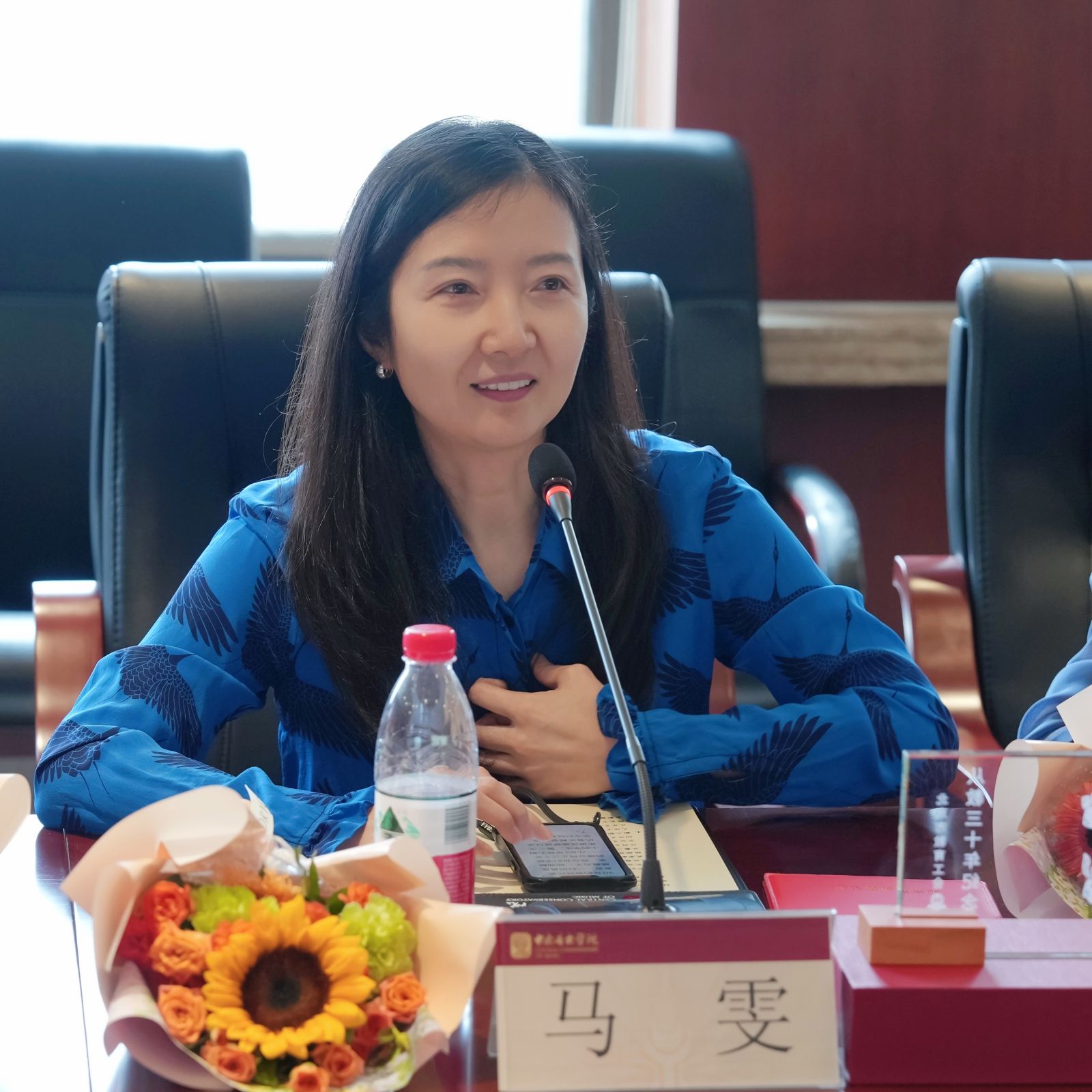 于红梅院长在讲话中,首先向所有从教三十年的教师致以节日的祝福和诚挚的问候。她表示,“筑梦传承三十载,桃李芬芳著华章”,既是今天座谈会的主题,也是对各位老师30载教育生涯最生动、最深刻的写照。学校举办从教满三十年教职工座谈会,旨在让央音的优良传统代代相传、让央音的师生更加具有凝聚力和向心力。她强调,老师们是学校发展的见证者,学校发展的每一个坚实脚印,都深深镌刻着奋斗的印记,浸润着辛勤的汗水,大家是学校辉煌历程的亲历者与推动者;老师们也是艺术薪火的传承者,始终坚守“为党育人、为国育才”的初心,秉持“勤奋、求实、团结、进取”的校训精神,将艺术薪火传递给一代又一代学子;老师们更是师德风范的践行者,用三十年的实际行动深刻诠释了“人民教师”的光荣称号与崇高责任,希望年轻教师以他们为榜样,不忘初心、牢记使命,在育人之路上行稳致远。