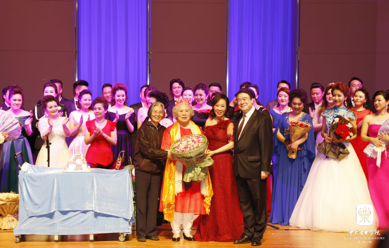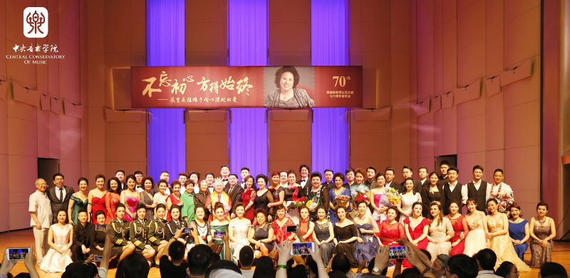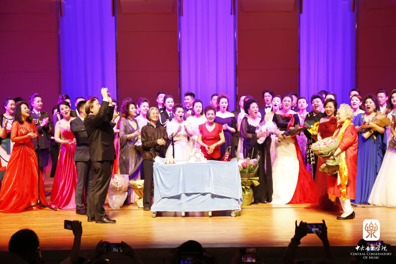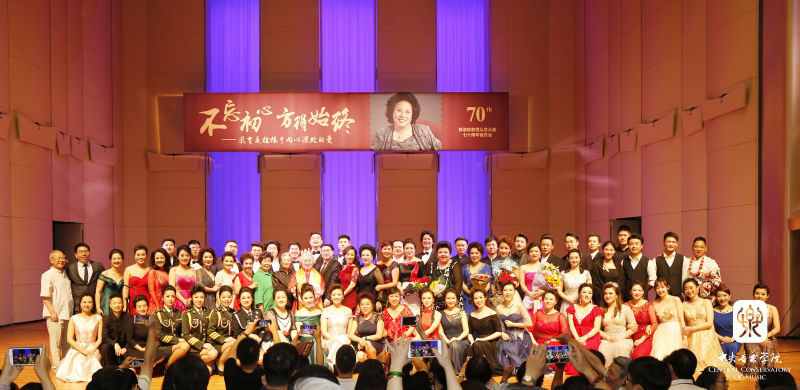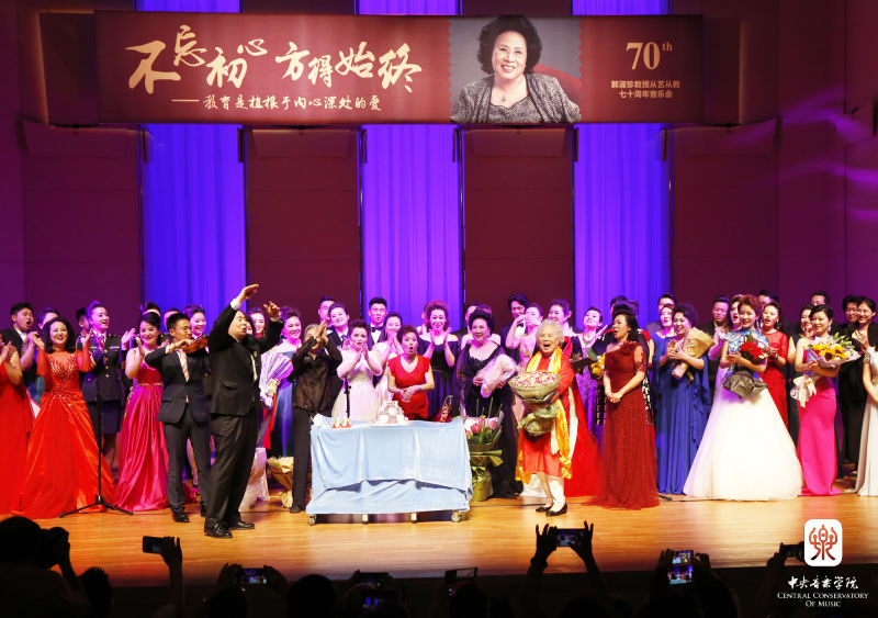 6月18日晚,"不忘初心 方得始终--郭淑珍教授从艺从教70周年师生音乐会"在学院歌剧音乐厅举行。参加演出的既有王秀芬、张立萍、吴碧霞、吴霜、王宏伟、刘和刚、泽旺多吉等著名歌唱家,也有冯国栋、王宏尧、孙媛媛、谢天、李佳轩等优秀青年才俊和声乐专业学生。他们中有郭淑珍教授的嫡传弟子,也有她的学生(林晶、孟玲、王秀芬)的学生,徒子徒孙再加曾徒孙,可谓四世同堂。学生们用真挚的情感和优美的歌声,表达他们对恩师的敬仰和感激之情。
