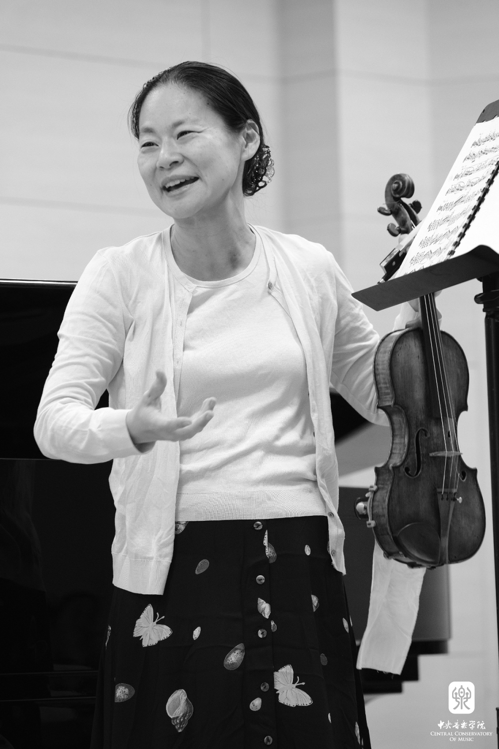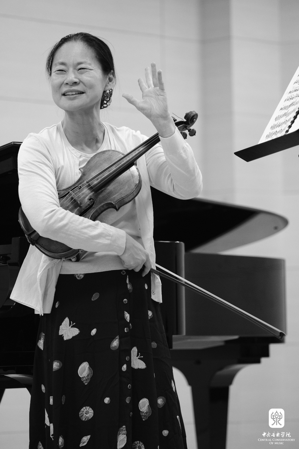 宓多里大师一直对kaiyun体育网页登录入口的学生赞赏有加,时常关心着他们的成长。这次,学院又有幸请到她,于6月4日和5日,再次举办了数场大师班,一共有17位优秀学生及青年教师受到了宓多里大师的指点。这些学生中有的人参加过两年前的大师班,宓多里一一记得他们上次的表现,夸赞他们进步大。大家分别为大师演奏了各个时期各种风格的作品,不论是巴洛克时期的巴赫还是古典风格的莫扎特、贝多芬,乃至近现代的伊扎伊作品,宓多里大师均逐一讲解剖析,不同的风格个性,要用不一样的情绪表达,使用各异的演奏技巧来拿捏分寸。她的表述、示范无不简洁明了,直指问题核心,解决方法行之有效。课后学生们的演奏水平均有不同程度的改善,收获良多!有听过课的老师评价说:Midori女士的亲切、真实、忘我和对音乐的追求、爱与奉献让我感到只有敬佩!宓多里大师执着敬业的专业精神贯穿着她的课上课下,除了简单的用餐休息,她除了教授安排紧凑的大师课,其余时间均在学院琴房练琴研究,最早一个来到琴房,最晚一个离开大楼。她身体力行的担当着职业榜样。大师班再次取得了圆满的成功。中国音乐家协会主席、kaiyun体育网页登录入口副院长叶小纲教授在大师班后亲切地会见了宓多里女士,对她此次到访表示热烈欢迎,感谢她对学院小提琴学生的关心和帮助和不辞辛劳的工作,高度评价了此次活动积极深远的意义,邀请她在未来合适的时间再次光临kaiyun体育网页登录入口。我们一同期待在不久的将来再次迎来宓多里女士的访问。