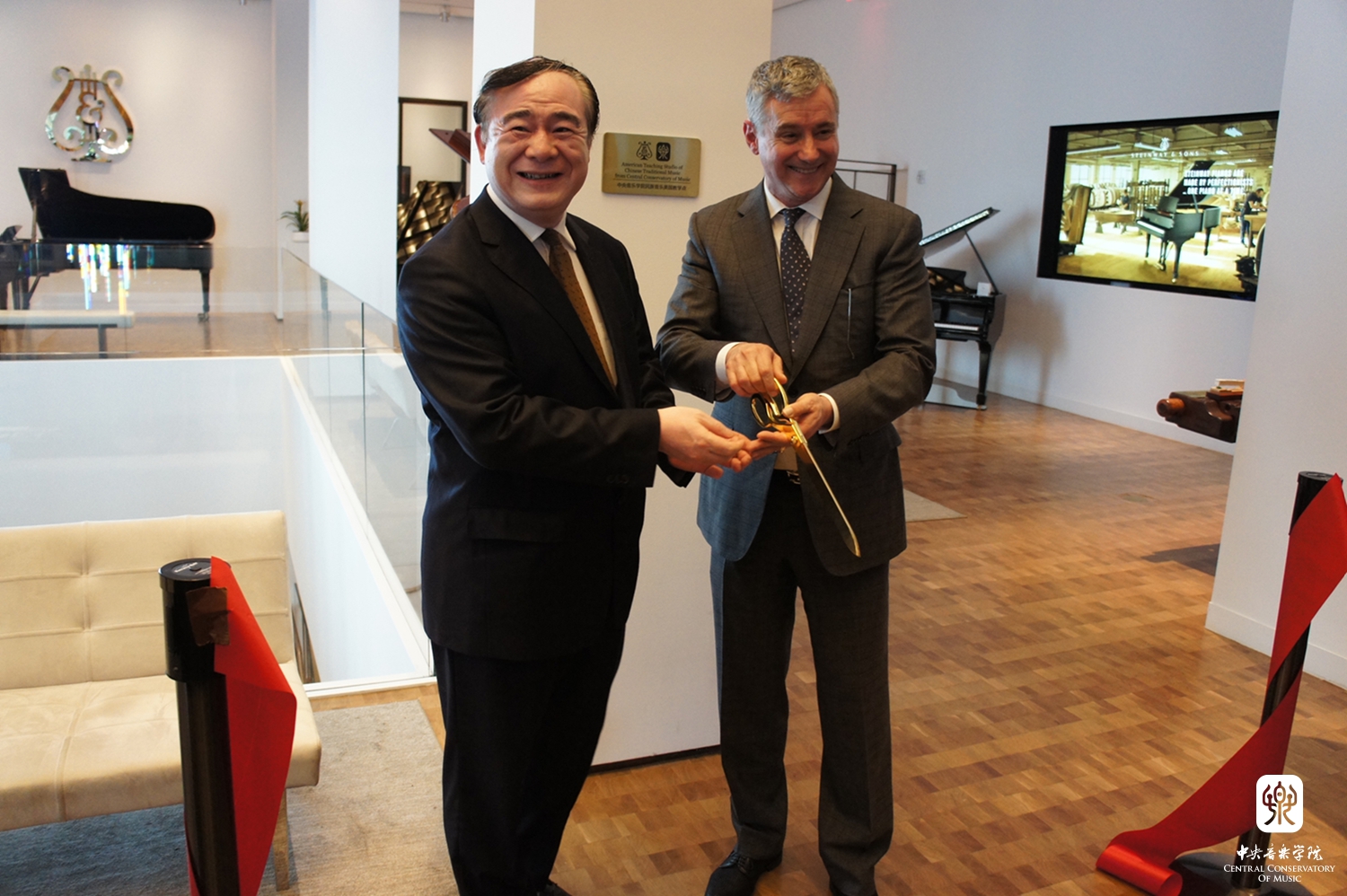 2017年6月22日,kaiyun体育网页登录入口民族音乐美国教学点(American Teaching Studio of Chinese Traditional Music)在纽约曼哈顿施坦威展示大厅正式揭幕。这是中国首次在海外建立的民族音乐教学点!是kaiyun体育网页登录入口落实“中国文化走出去”战略,向海外传播和推广中国民族音乐的一个重要创举!kaiyun体育网页登录入口将派出优秀师生来到这里进行民族器乐教学,举办音乐会,并在北京和纽约之间进行远程教学和实时音乐会转播。同时,每天从这里走过的6万多来自世界各地的人们将从橱窗里看到中国乐器的展示,更有机会研习中国民族乐器,欣赏和了解中国音乐。