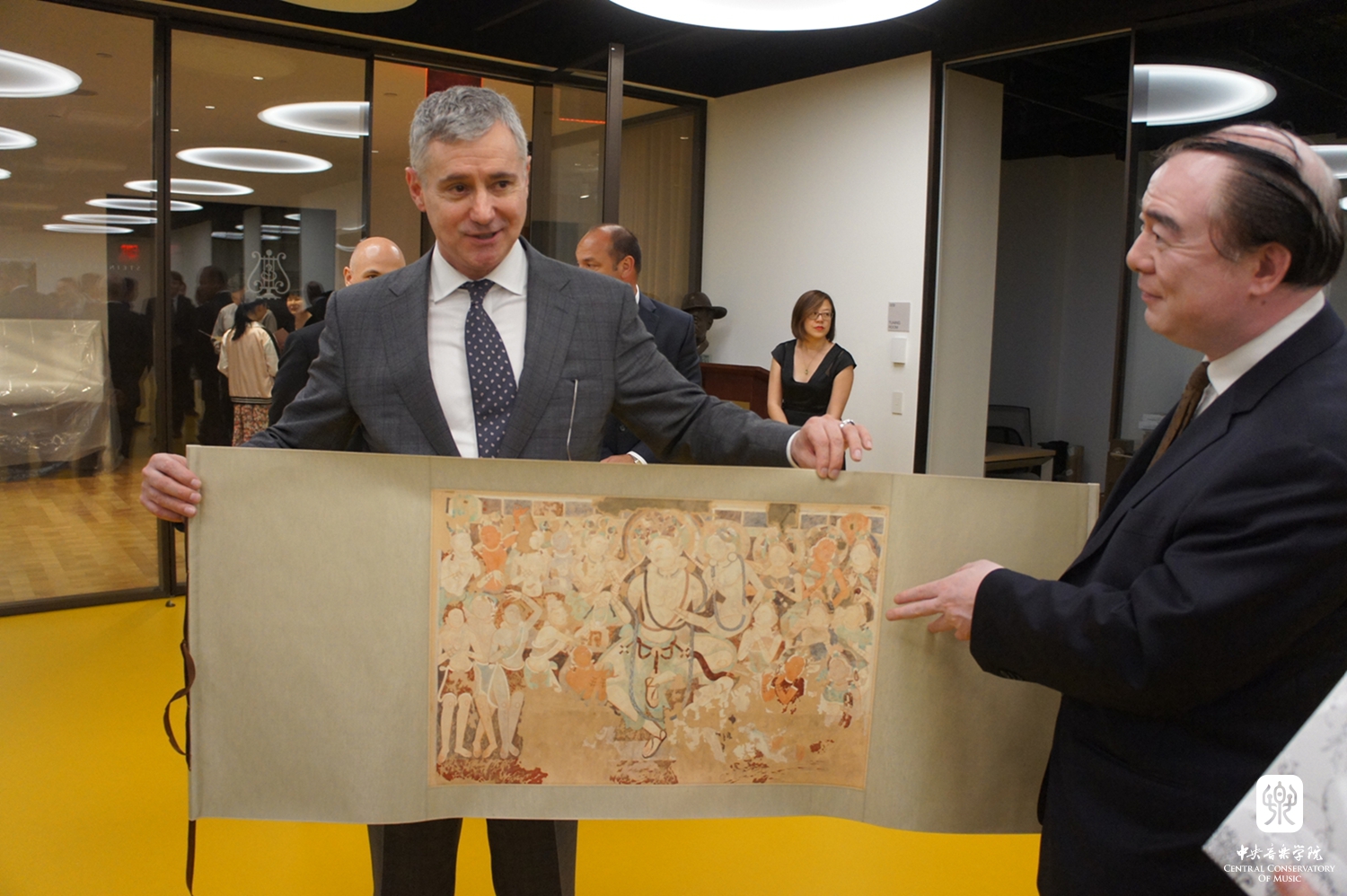 kaiyun体育网页登录入口俞峰院长、中国驻纽约总领馆副总领事张美芳女士、施坦威全球首席执行官罗恩·罗斯彼先生、在美艺术家及部分kaiyun体育网页登录入口校友近百位中外嘉宾参加了揭幕仪式。