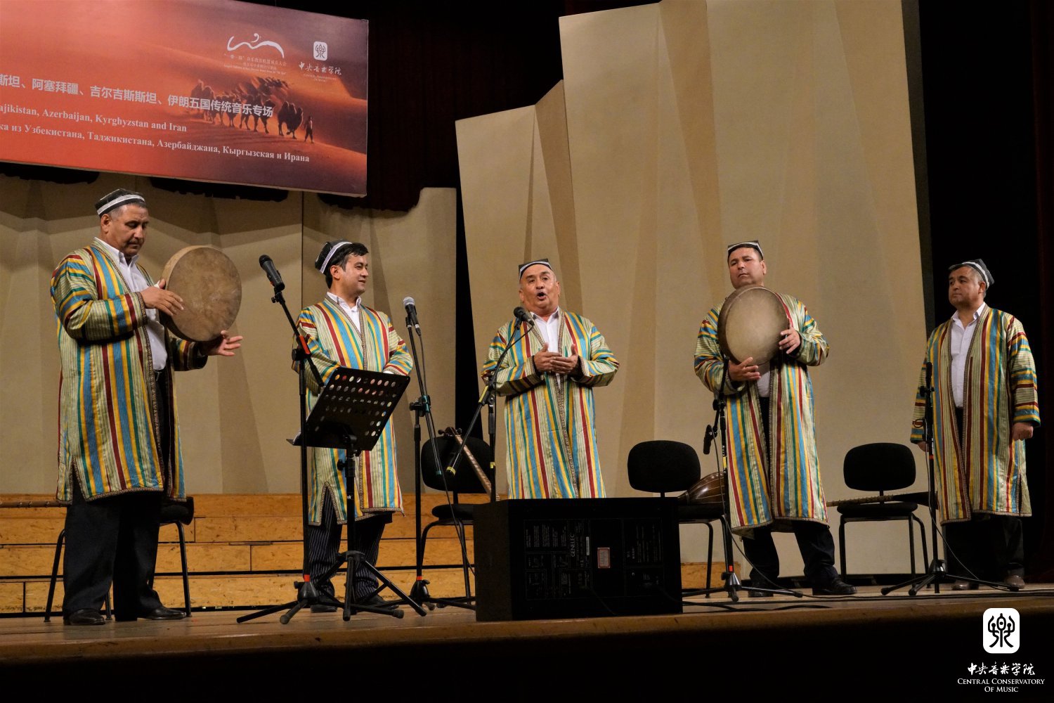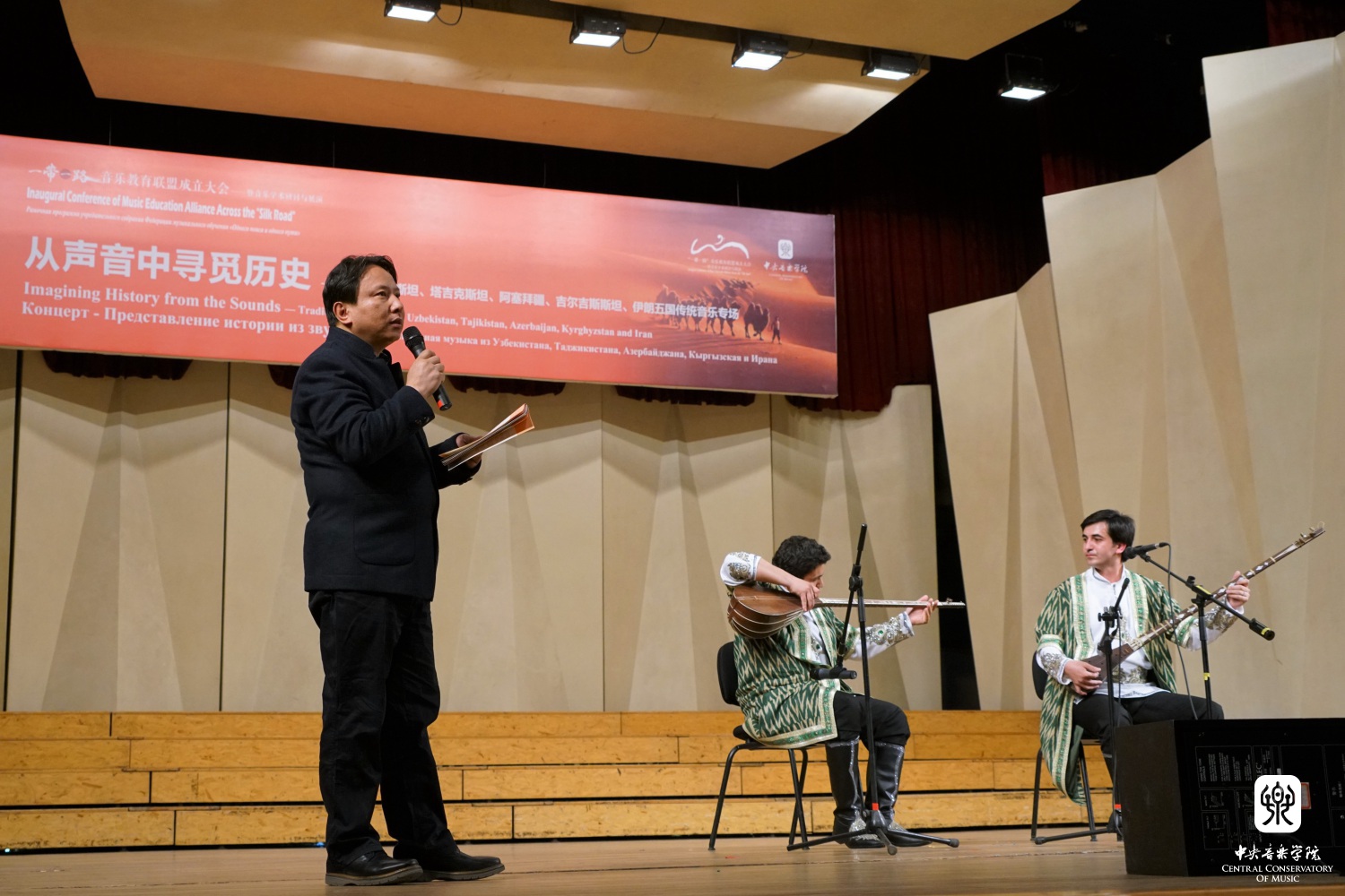 2017年5月6日晚kaiyun体育网页登录入口音乐厅,“‘一带一路’音乐教育联盟成立大会”音乐展演活动继续进行。本场音乐会“从声音中寻觅历史——乌兹别克斯坦、塔吉克斯坦、阿塞拜疆、吉尔吉斯斯坦、伊朗五国传统音乐专场”中,五个国家的专业演员们身负文化交流的重任,在kaiyun体育网页登录入口音乐学系主任安平教授的主持下,向观众们热情展演了他们国家的传统音乐精华。