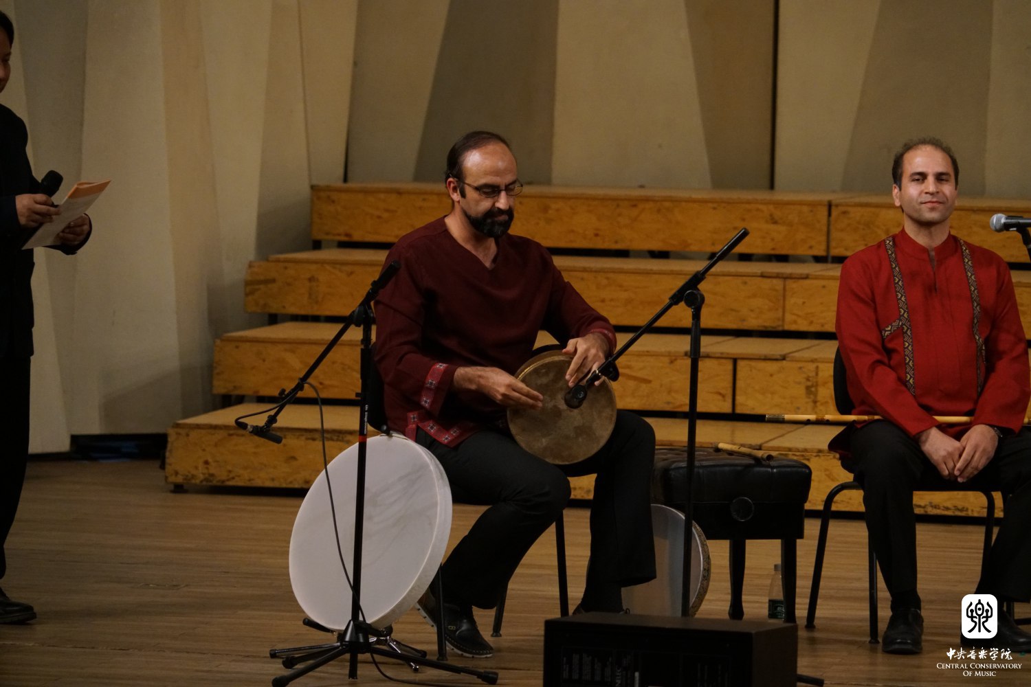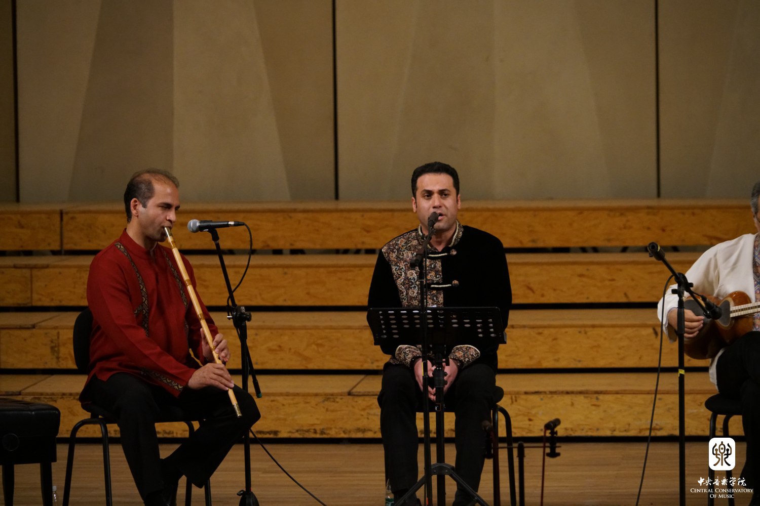 在安平老师的主持下,来自伊朗的加瓦(Javan)乐队,介绍了扬琴桑图尔(Santour)演奏家梅迪·赛阿达(Mehdi Siadat);塔尔琴(Tar)演奏家阿马德·绍阿林(Ahmad Shoarian);歌手维赫德·塔基(Vahid Taj);奈伊笛演奏家马森·梅卡尼基(Hasan Mekaniki)、通巴鼓(Tombak)演奏家阿米德·甘博瑞(Hamid Ghanbari)。