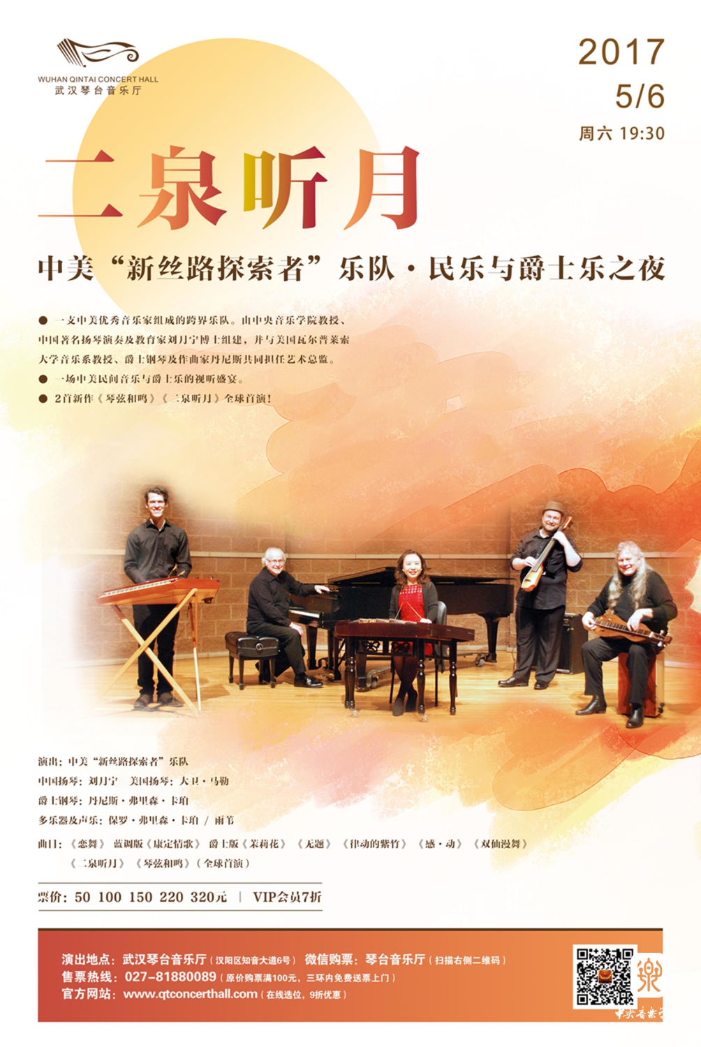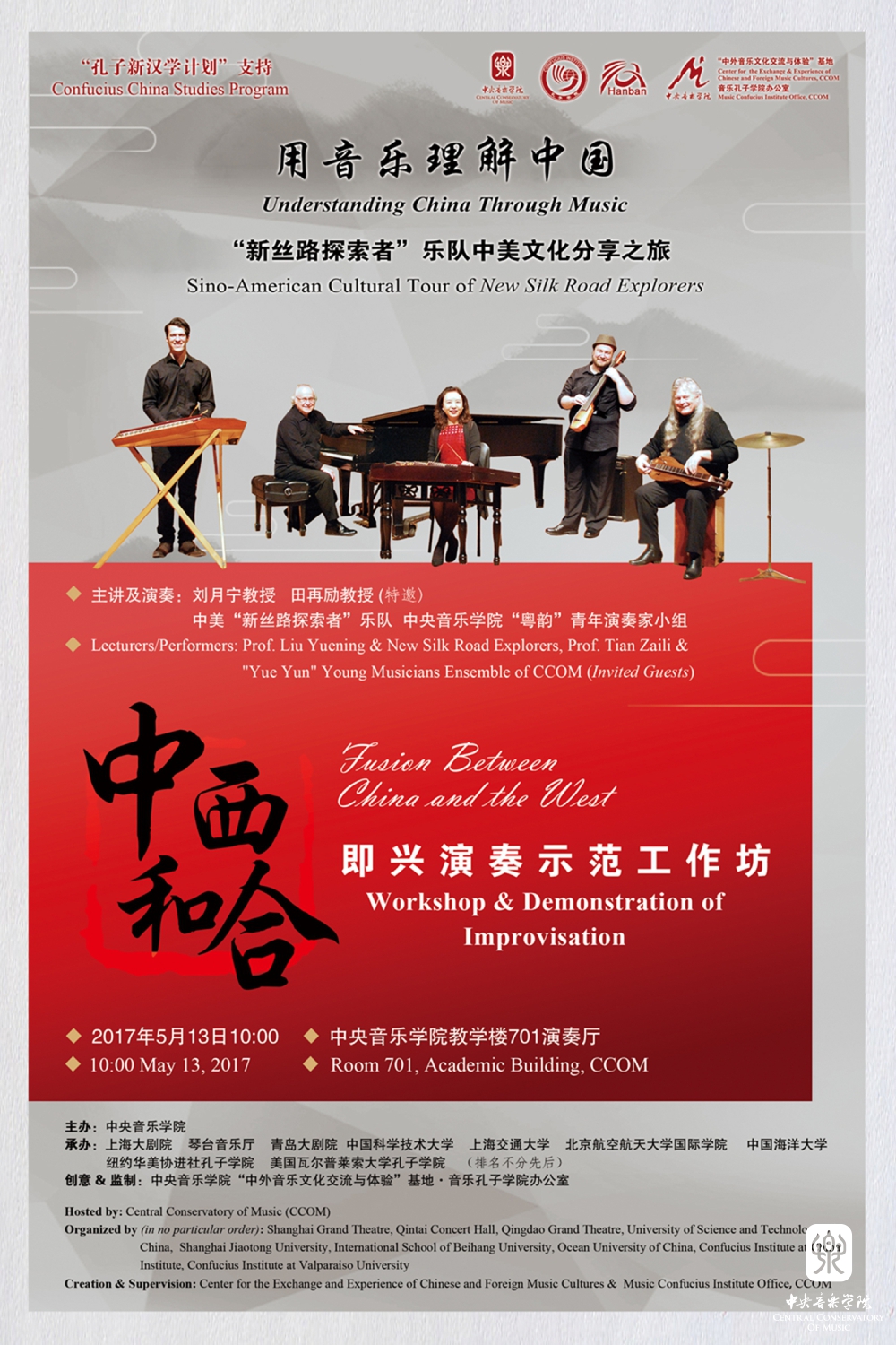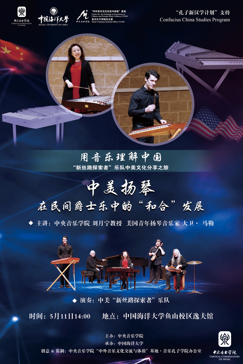 2017年5月2日至5月13日,由孔子学院总部及社会各界支持、kaiyun体育网页登录入口主办、“中外音乐文化交流与体验”基地及音乐孔子学院办公室创意监制的“用音乐理解中国——‘新丝路探索者’乐队中美音乐文化分享之旅”中国巡演阶段圆满落幕。乐队由kaiyun官网刘月宁教授领衔,与美国青年扬琴演奏家大卫,爵士钢琴家、作曲及指挥家丹尼斯教授,多乐器演奏家、创作型歌手保罗,多乐器演奏家、音乐制作人雨苇共同组成。在12天的巡演中,乐队走访了北京、上海、武汉、合肥、青岛5个城市,举办了9场主题音乐会、艺术分享和文化交流活动,近7000名嘉宾及各界观众参与,中央电视台、中国教育电视台、北京电视台、China daily、中国网、中青网、中新社、中国艺术报等十余家主流媒体发布专题报道。