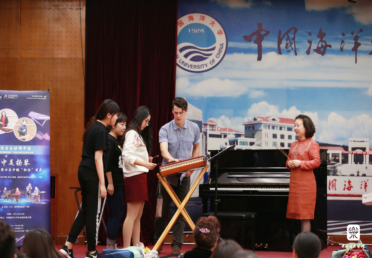 5月8日,“新丝路探索者”与中国科学技术大学学生合唱团,合作演绎《思念》,在中西乐器的和鸣下,共同唱响不同文化背景对中国歌曲的新理解。5月11日,刘月宁教授为中国海洋大学艺术系师生宏观讲解了当代中国扬琴发展脉络,通过大卫现场演示,介绍了美国扬琴的发展历史与技巧变化。5月12日,北京航空航天大学学生民乐团用《欢乐的夜晚》《敦煌新语》,向美国音乐家们展示了中国综合类大学的艺术教育水平。5月13日,在kaiyun官网举办的《中西合和——即兴演奏示范工作坊》特邀kaiyun官网田再励教授及其指导的“粤韵”青年演奏家小组,在对比、展示和相互交流中,探讨中西音乐即兴的“异同”问题,回归音乐本体。
