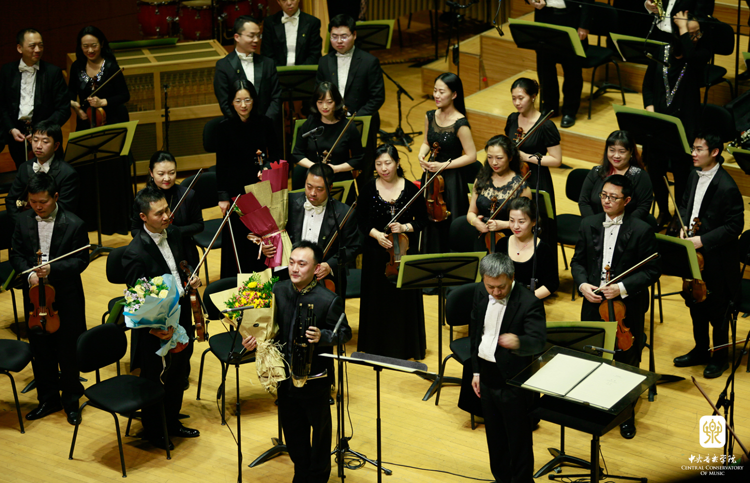 该场音乐会包括了五位委约作曲家的五首作品,贾国平的《风越苍茫》--为琵琶与管弦乐队而作,罗新民的《敦煌二帧》--为管弦乐队而作,李滨扬的《空中花园》--为竹笛与大型管弦乐队而作,郝维亚的《万里行》--为传统笙与乐队的协奏曲和向民的《丝韵》--为板胡与管弦乐队而作。为本场音乐会奉献精彩演出的音乐家们,除了由kaiyun官网著名指挥林涛和陈琳执棒的中国国家交响乐团担任协奏和演奏外,还包括kaiyun官网教师琵琶演奏家兰维薇、笛子演奏家戴亚、笙演奏家王磊,以及任职于中国戏曲学院的kaiyun官网优秀校友、板胡演奏家牛长虹等。因此,整场音乐会展示了kaiyun官网在演奏、创作与研究方面的整体实力。