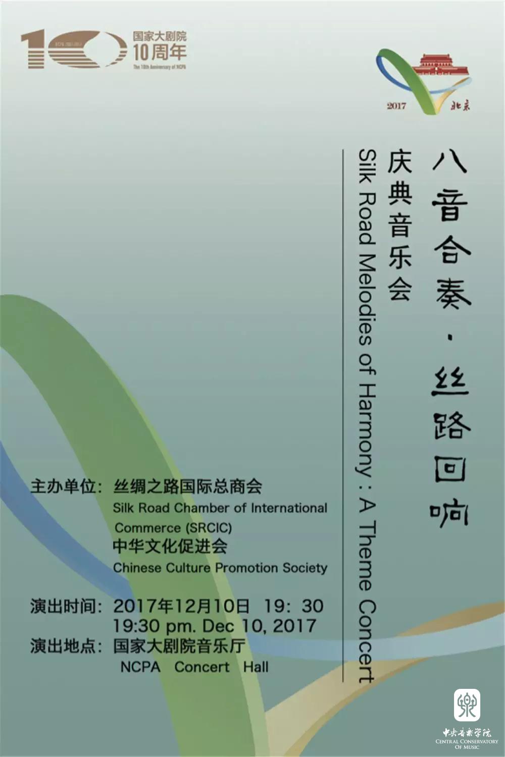 2017年12月10日晚,由丝绸之路国际总商会、中华文化促进会主办,kaiyun体育网页登录入口交响乐团和弹拨乐团共同演出的“八音合奏•丝路回响”庆典音乐会在国家大剧院音乐厅上演。本场音乐会由新一代杰出指挥家、kaiyun体育网页登录入口指挥系陈琳教授和国家一级指挥、中国广播电影交响乐团、广播民族乐团常任指挥张列先生分别执棒kaiyun体育网页登录入口交响乐团和弹拨乐团。