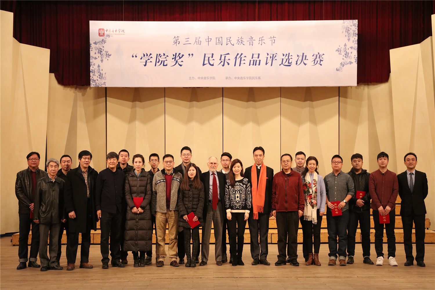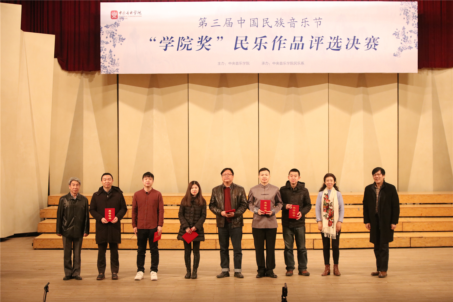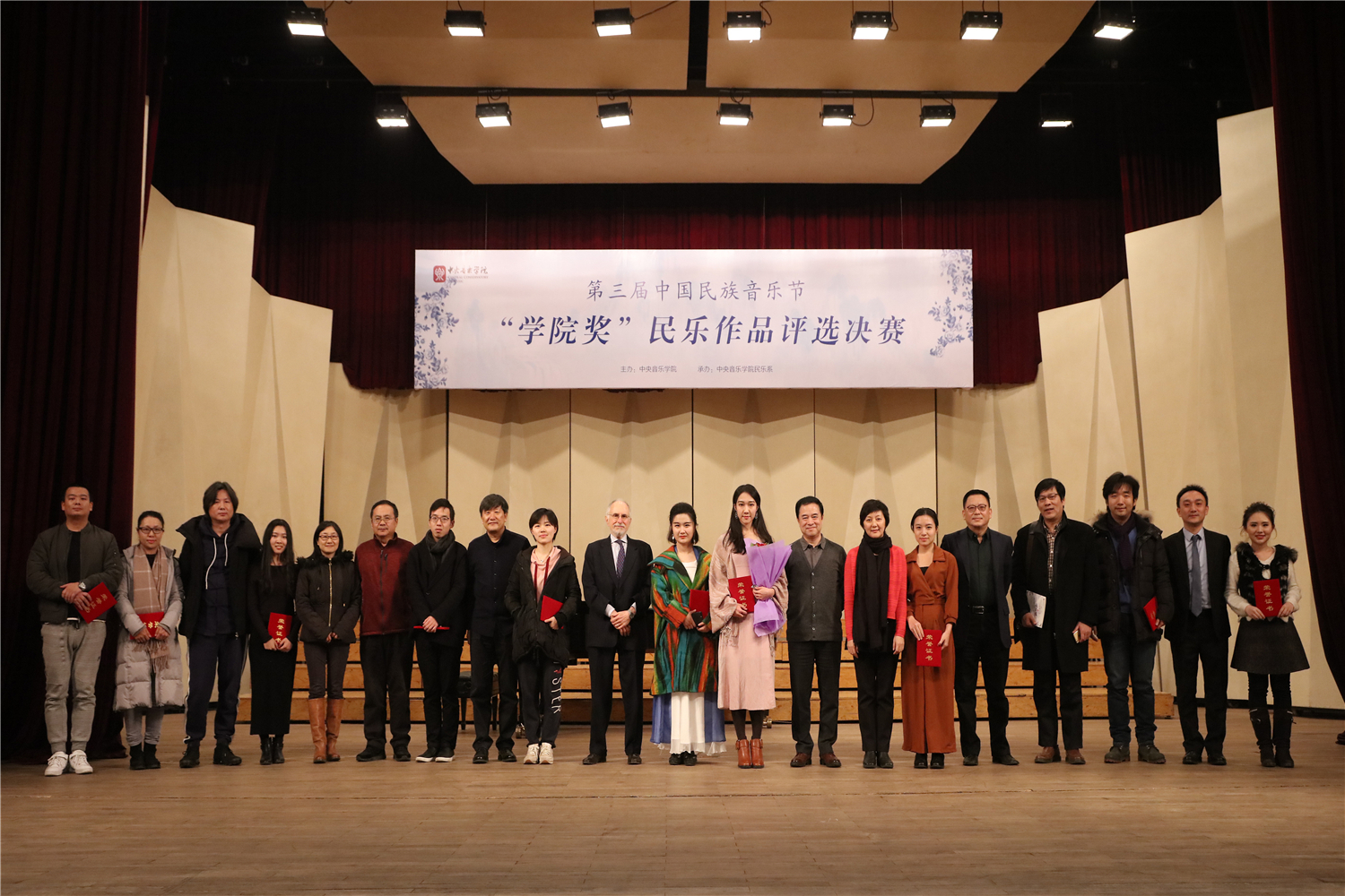 第三届中国民族音乐节暨“学院奖”民乐作品评选活动于12月初落下帷幕。此次评选分为“民族室内乐”和”民族器乐独奏”两类,自章程公布之日起,共收到来自全国各地的作品共计71部(独奏38部,重奏33部)。初评采取评委集中审阅总谱、现场聆听音频、各自打分的方式,分别遴选出独奏作品18部和室内乐作品12部。两组晋级作品于12月1日(民族室内乐组)和2日(民族器乐独奏组)在王府音乐厅进行了决赛,经过两晚近八小时的角逐,最终产生了各组一、二、三等奖及优秀奖。结果如下:
