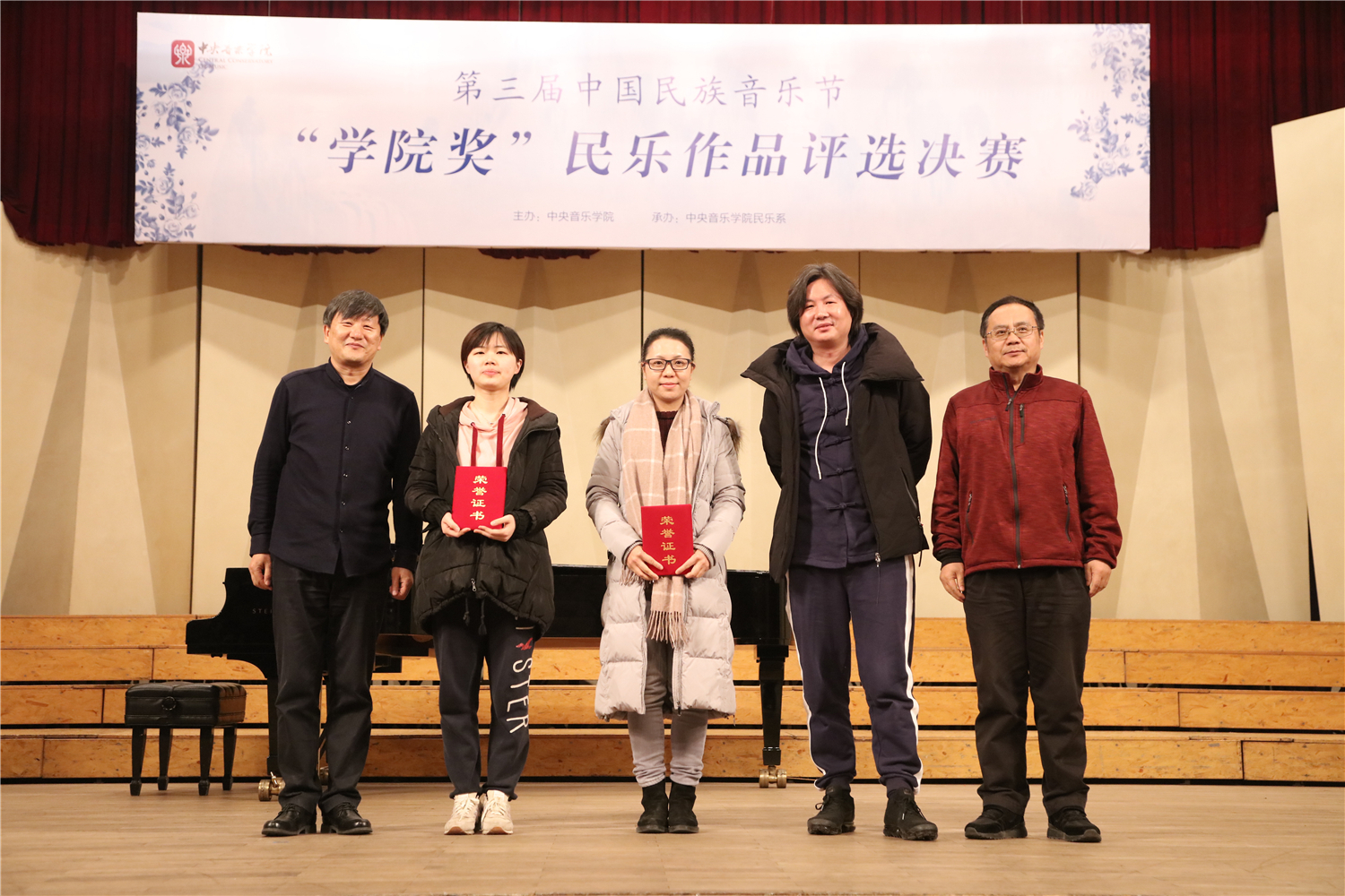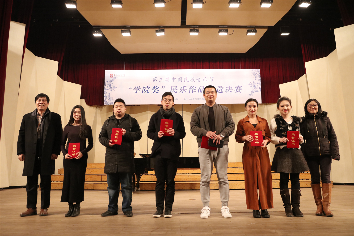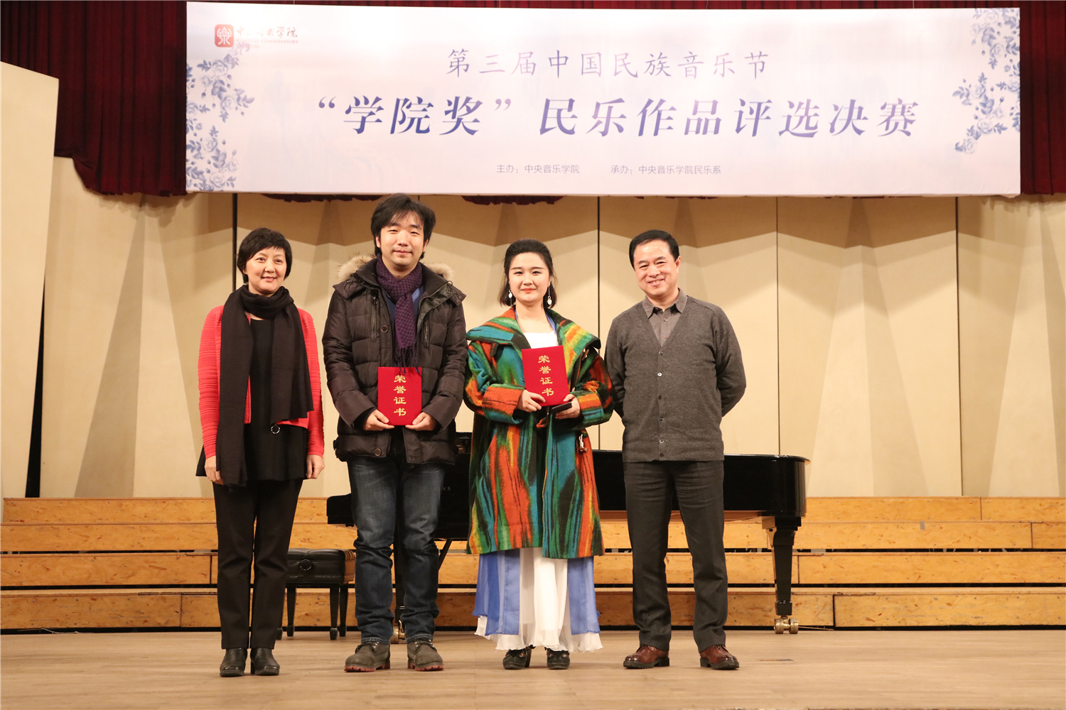第三届中国民族音乐节暨“学院奖”民乐作品评选活动于12月初落下帷幕。此次评选分为“民族室内乐”和”民族器乐独奏”两类,自章程公布之日起,共收到来自全国各地的作品共计71部(独奏38部,重奏33部)。初评采取评委集中审阅总谱、现场聆听音频、各自打分的方式,分别遴选出独奏作品18部和室内乐作品12部。两组晋级作品于12月1日(民族室内乐组)和2日(民族器乐独奏组)在王府音乐厅进行了决赛,经过两晚近八小时的角逐,最终产生了各组一、二、三等奖及优秀奖。结果如下: