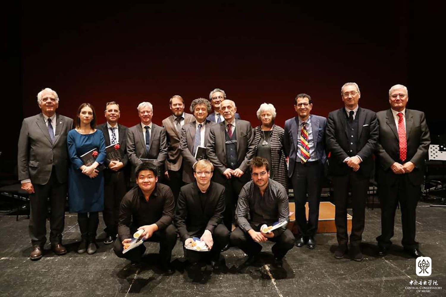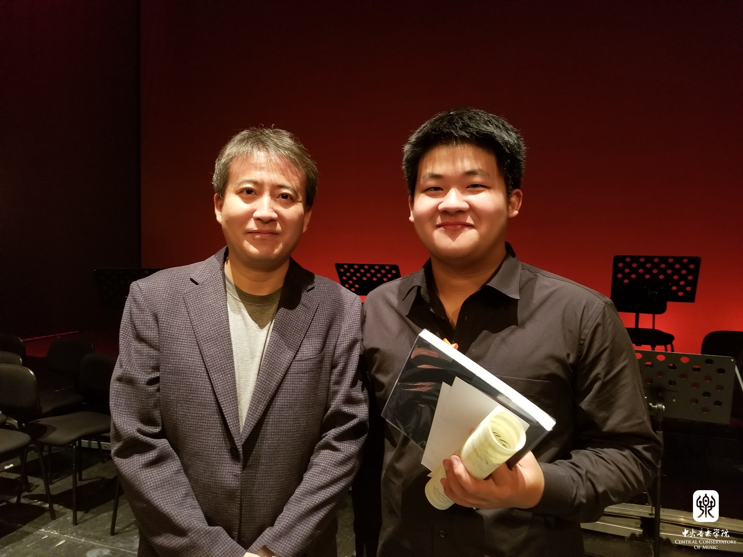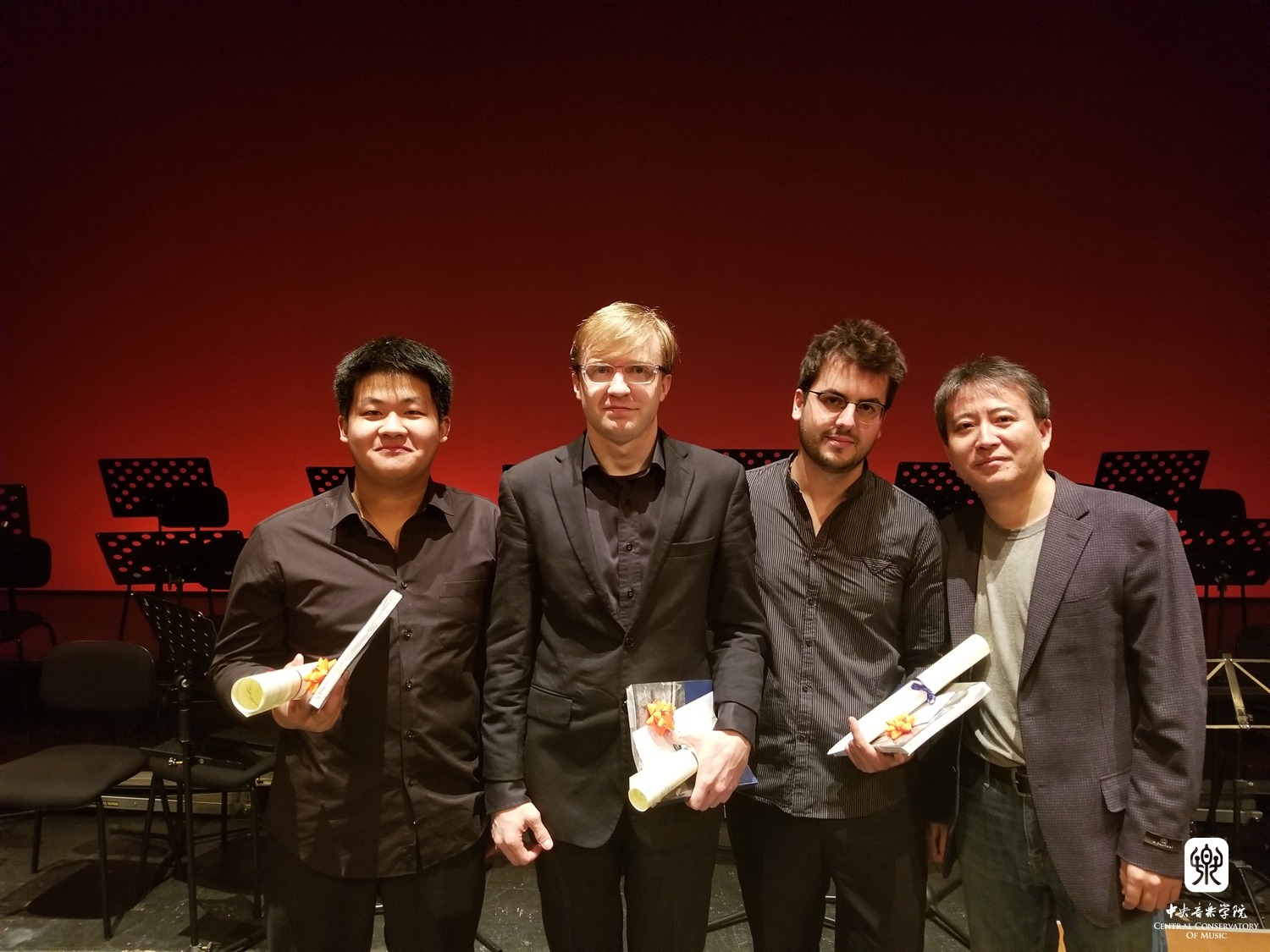 | 温泉老师,曾韵,与专为此次比赛进行创作的委约作曲家A.Ouzounoff |