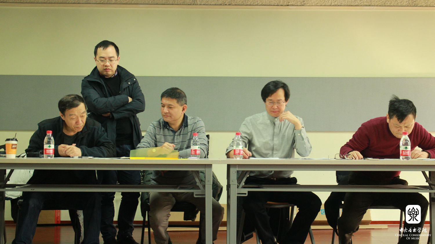 9月开学伊始,百余部带着温度和感情的歌词作品如潮水般涌来,投稿者从学生到老师,从业务骨干到行政干部,从在职员工到离退休老同志,大家对征集活动的积极响应和热情投入令人倍感欢欣鼓舞。之后由俞峰院长亲自挂帅,与党委副书记苗建华研究员、作曲系副主任秦文琛教授、作曲系唐建平教授;音乐学系主任安平教授以及院长办公室主任赵海组成的歌词评审小组决定将全部投稿作品分成两类面向师生,直接进入歌曲征集活动阶段。校领导动员作曲系,由作曲系主任郭文景教授和副主任秦文琛教授集合最强作曲家阵容对征集到的80余首歌曲创作作品进行两轮评审,并聚焦在15首艺术性强、易于传唱的歌曲,同时组织师生对这些作品进行修改和配器,为下一步的作品展示积极准备。