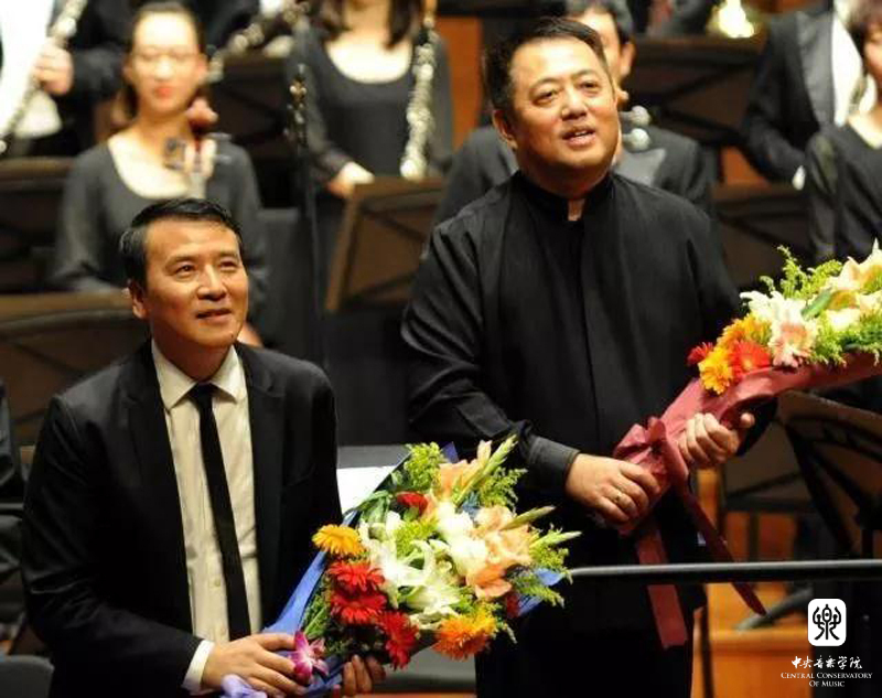 作曲家叶小纲(左)、指挥吕嘉(右)向观众致谢