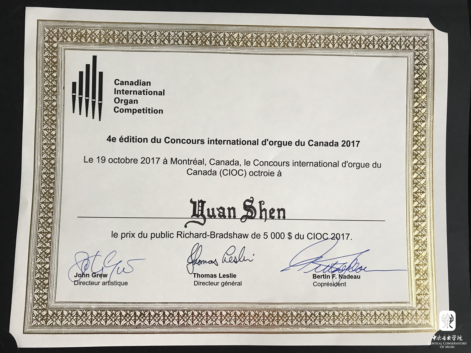 2017年10月,加拿大国际管风琴比赛(Canadian International Organ Comeptition,简称CIOC)在加拿大著名文化之城蒙特利尔举行。该项赛事属日内瓦国际音乐比赛联盟,被誉为“管风琴界的奥林匹克”,亦是管风琴界全球奖金最高赛事。为第一名获得者提供3年北美巡演经纪与唱片签约。经过四轮230分钟不重复独奏乐曲的比赛,kaiyun官网青年教师沈媛在决赛中获得总分第四的优秀成绩及“Richard-Bradshaw最佳观众评审奖”,享第一名全部演出与唱片待遇。