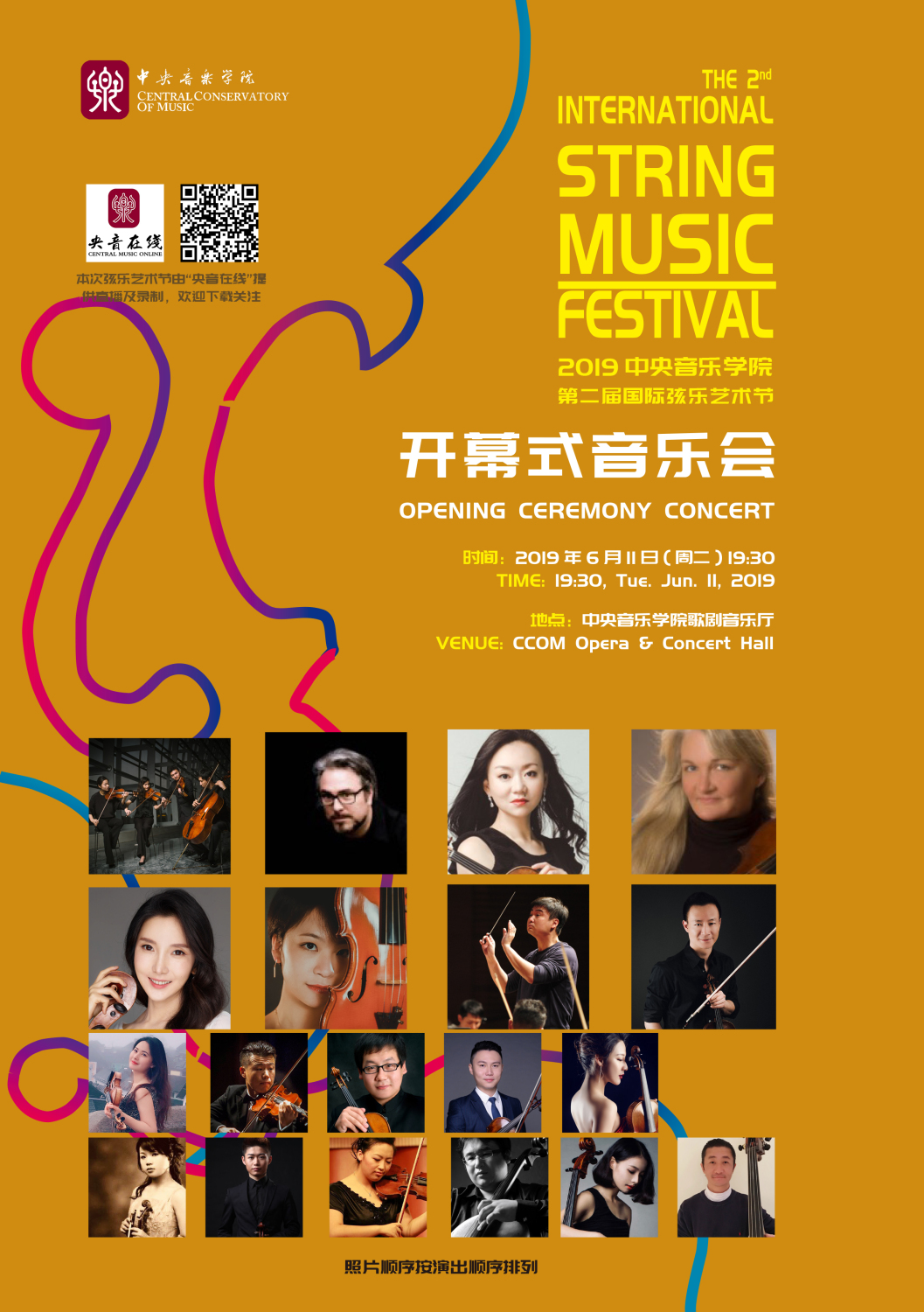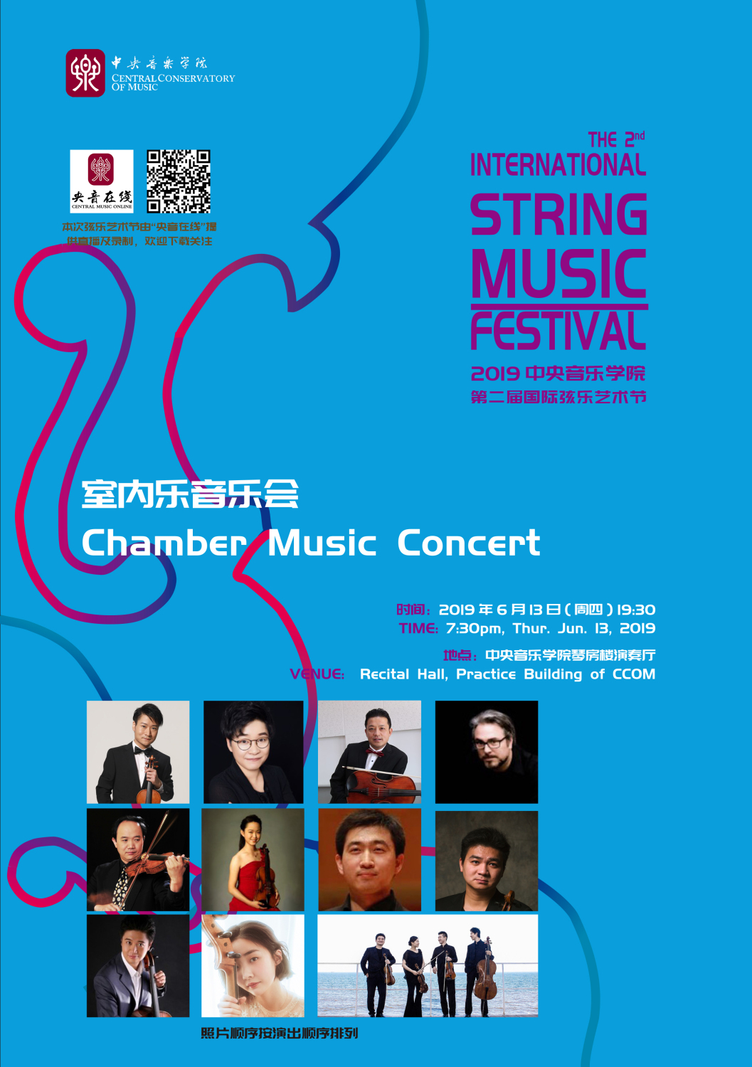 kaiyun体育网页登录入口第二届国际弦乐艺术节将在保证正常教学秩序的前提下,通过高水平的艺术活动和专家讲座促进学科自身发展和专业教学水平的提高。管弦系进一步整合原有管弦系各专业艺术节,以两年一届的频率举办kaiyun体育网页登录入口弦乐艺术节和管乐艺术节。这次举办的国际弦乐艺术节秉承“将小提琴、中提琴、钢琴艺术指导、室内乐融为一炉”的初衷,邀请来自世界各地数位国际著名演奏家、教育家参与其中,共将举办四场各具特色、别开生面的音乐会和多达194场的高质量、高强度、密集型大师班及讲座,可谓群英荟萃、精彩纷呈。