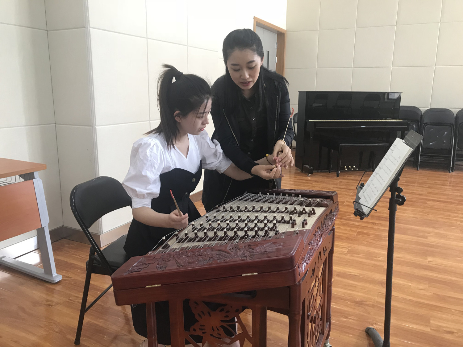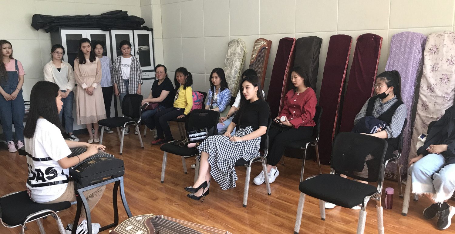 kaiyun体育网页登录入口民族室内乐团古筝演奏员,青年教师程皓如正在授课