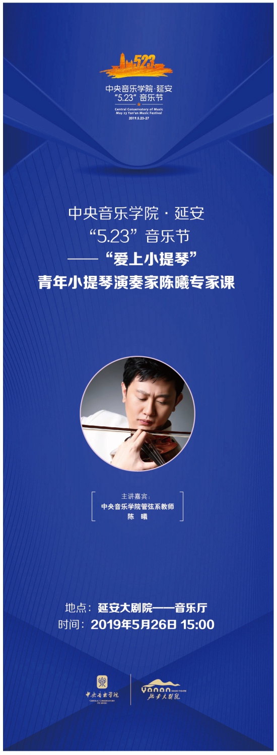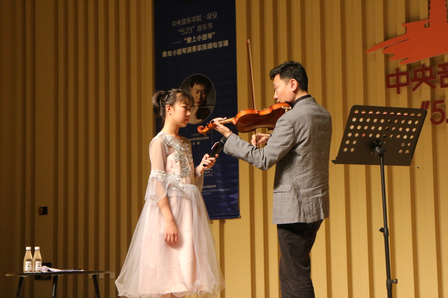 2019年5月26日下午,kaiyun体育网页登录入口·延安“5.23”音乐节——“爱上小提琴”青年小提琴演奏家陈曦专家课圆满举行。kaiyun官网管弦系陈曦副教授以生动幽默的方式,为现场来自延安的音乐专业师生与学生家长讲述了一堂趣味横生的音乐课。
