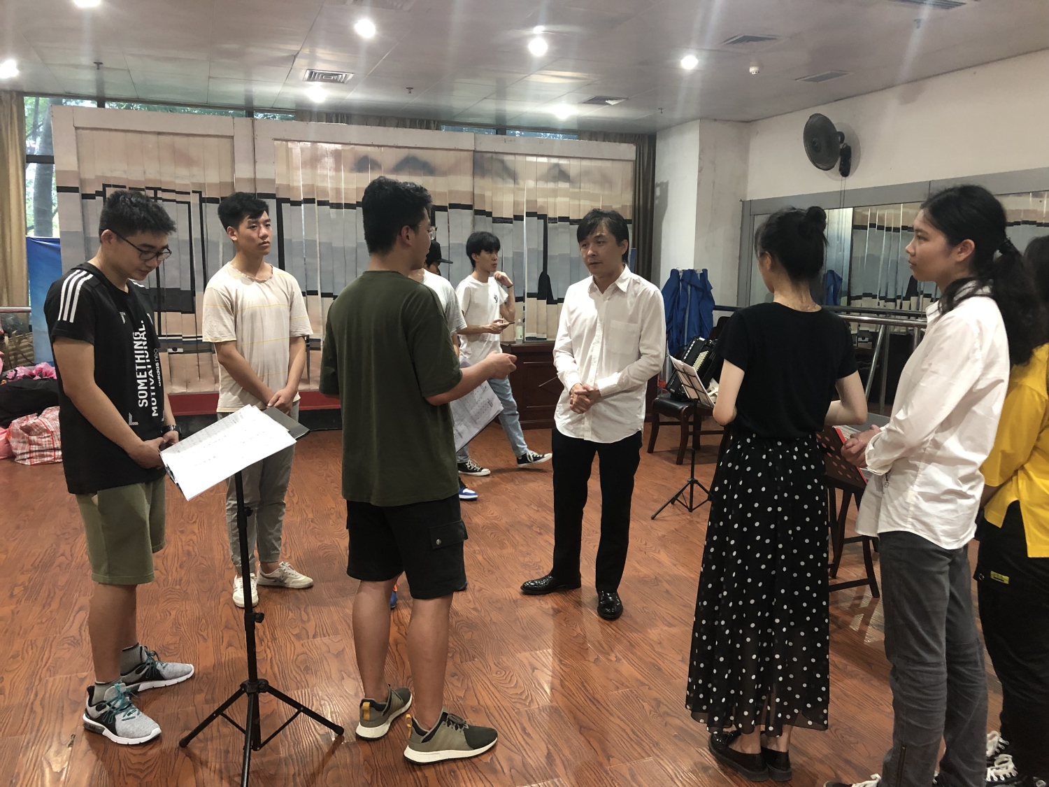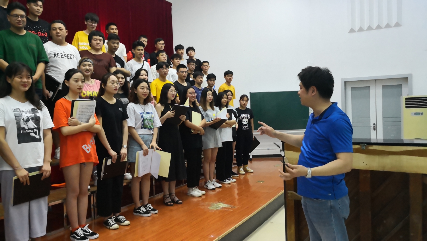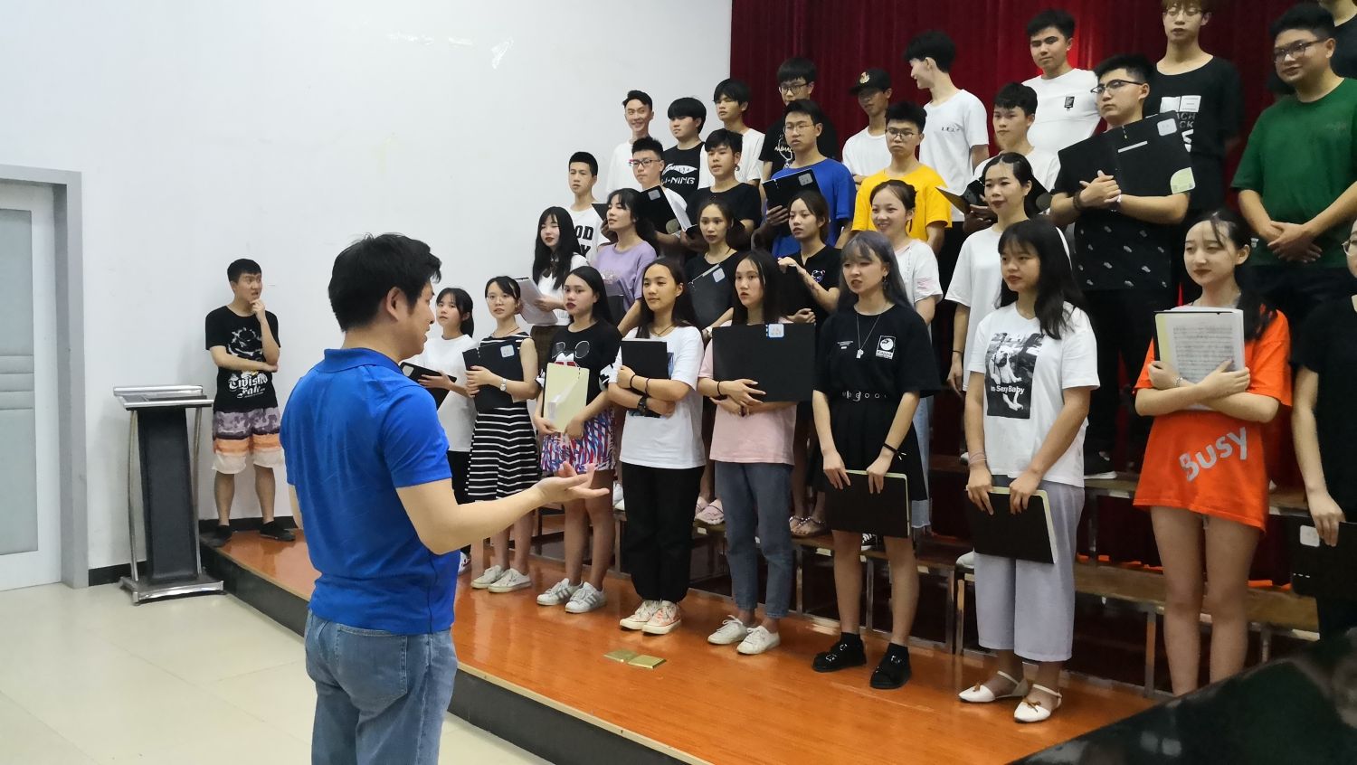17日下午,乐团指挥杨力对柳州铁道职业技术学院大学生合唱团进行合唱指导。