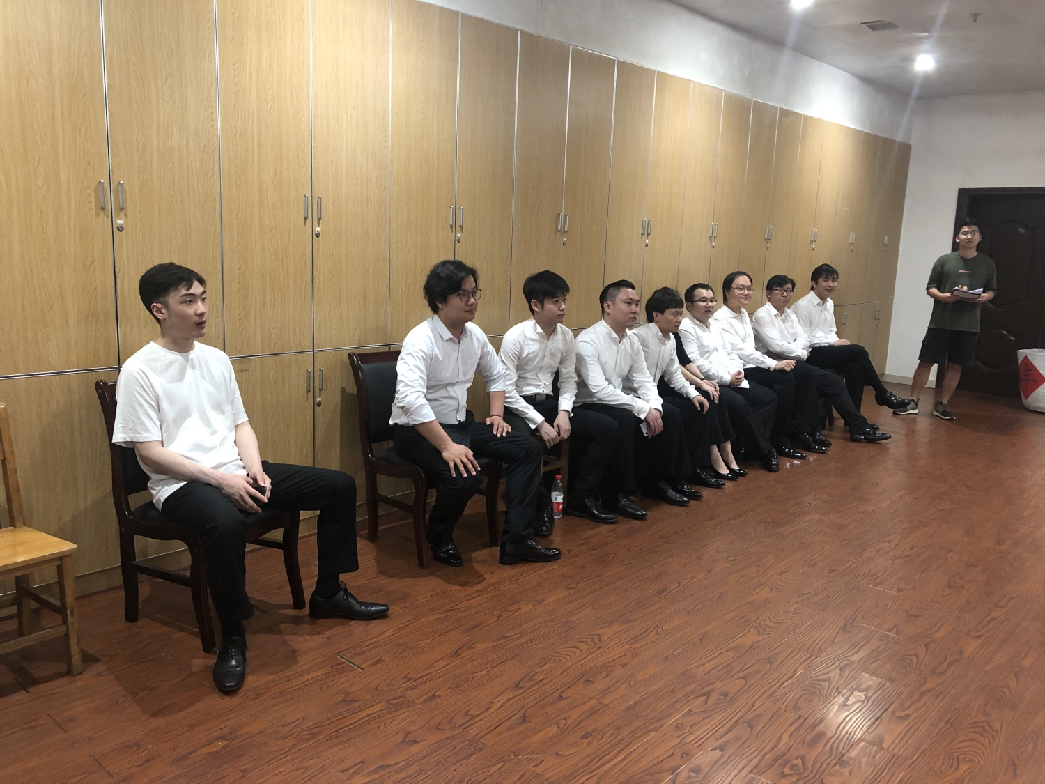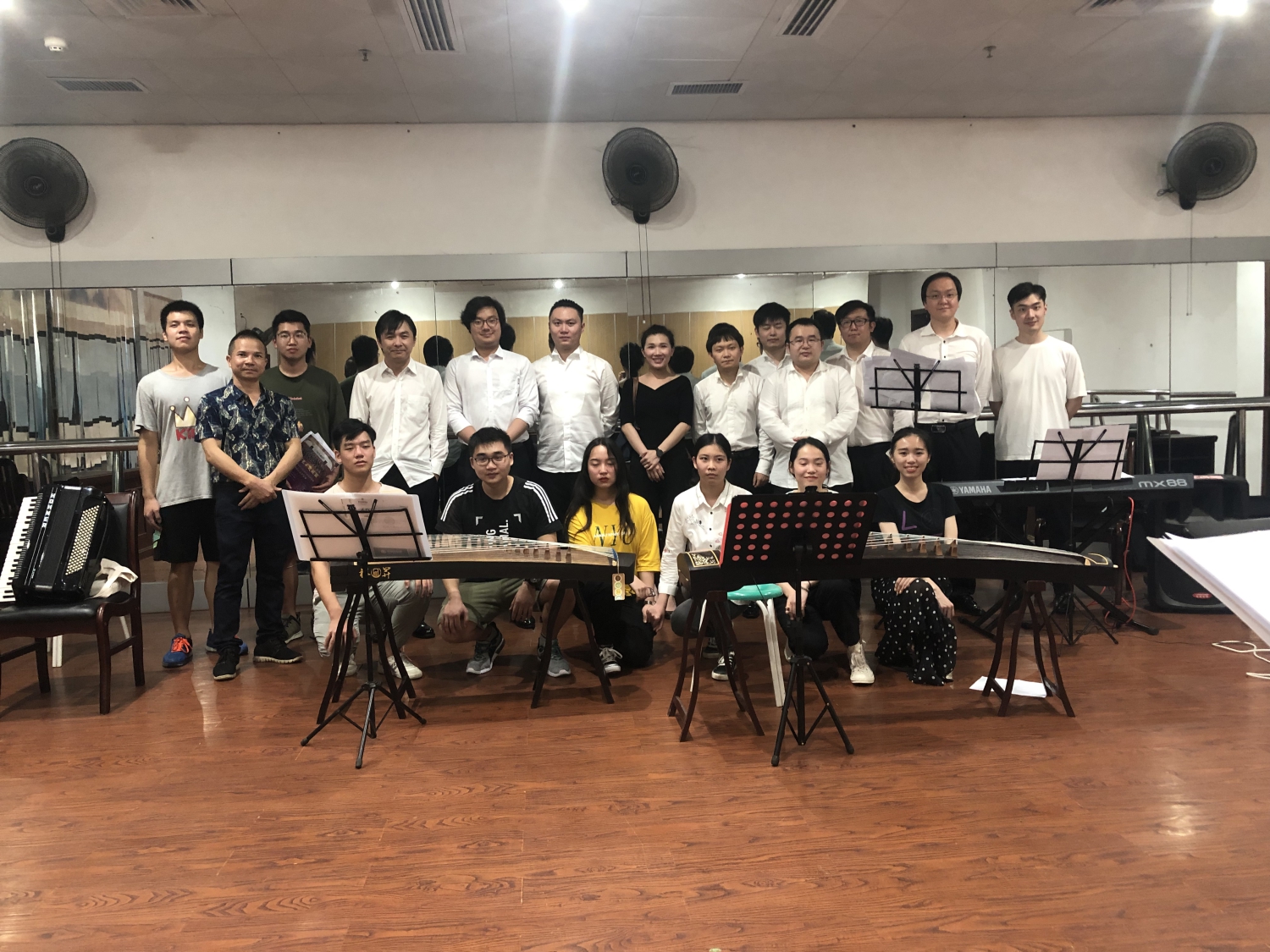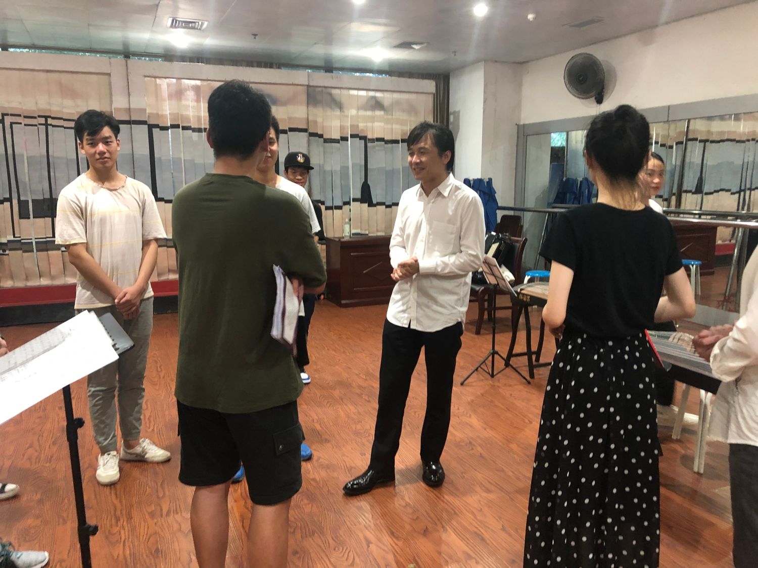 18日下午,在昨晚聆听完乐团首席张精冶演奏的《梁祝》后,柳州铁道职业技术学院的学生乐器爱好者再次用各种乐器进行了演奏,各声部首席聆听了他们的演奏并进行现场的指导。