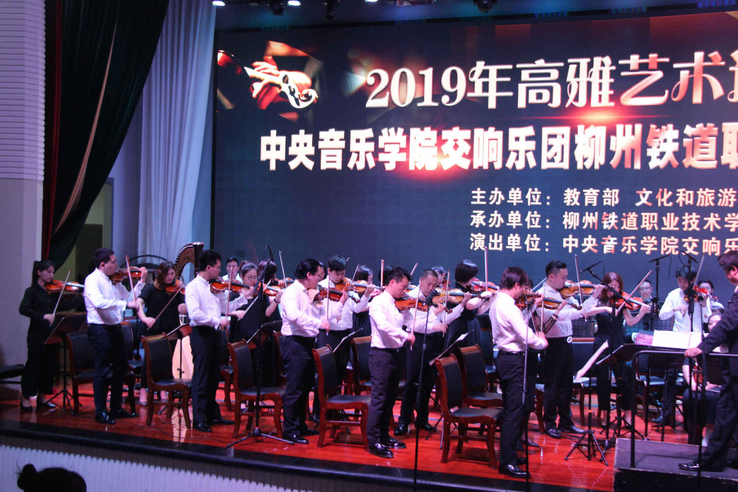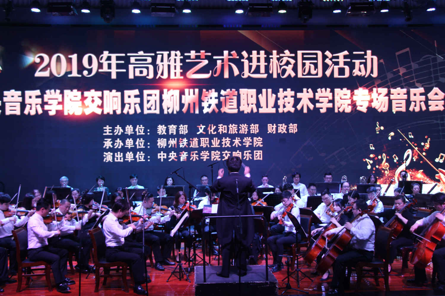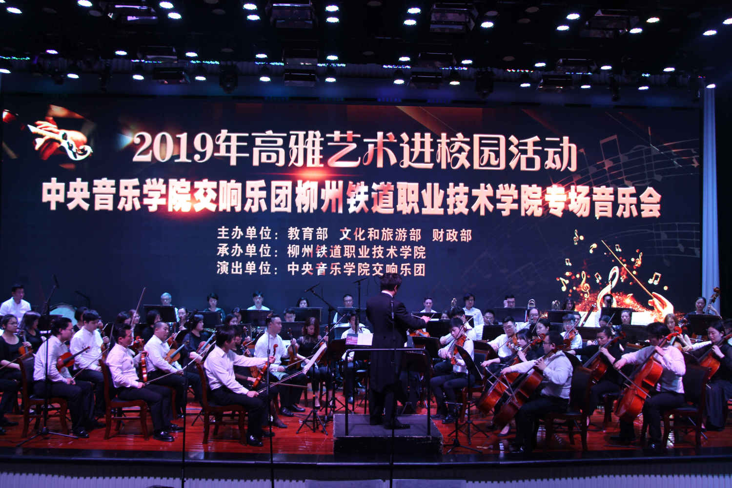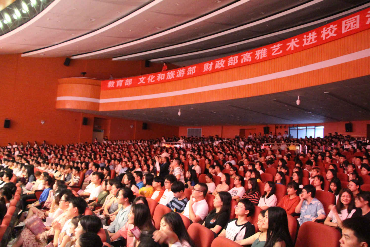 由教育部、文化和旅游部、财政部联合开展的2019年高雅艺术进校园,以立德树人为根本,以理想信念教育为核心。扎根时代生活,弘扬中华美育精神,以弘扬主旋律为己任,以美育人、以美化人、以美培元。让广大青年学生在艺术学习的过程中汲取艺术的精髓,提高审美和文化素养,塑造美好心灵,坚定文化自信,培养德智体美劳全面发展的社会主义建设者和接班人。
