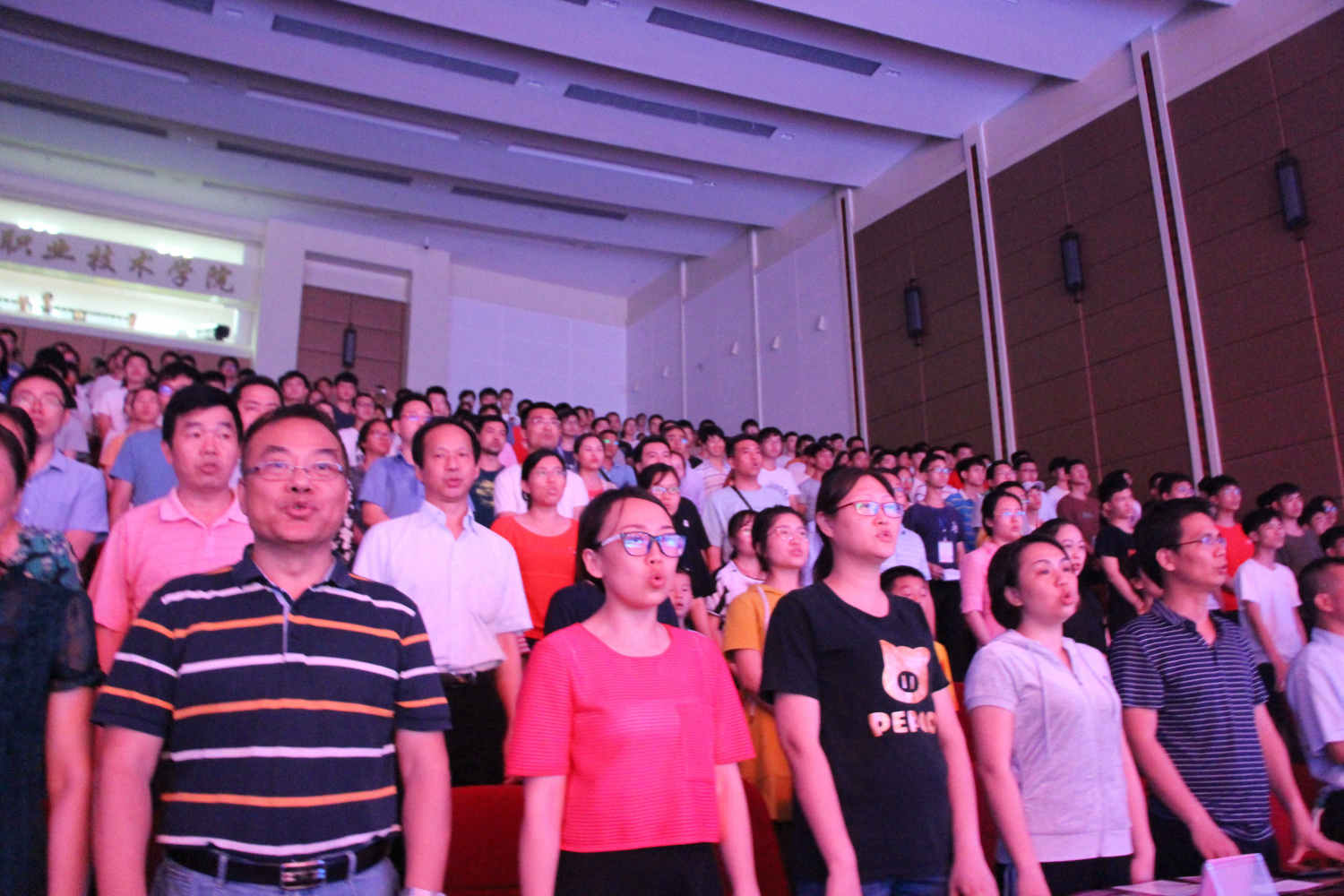 全场师生在指挥和领唱的带领下