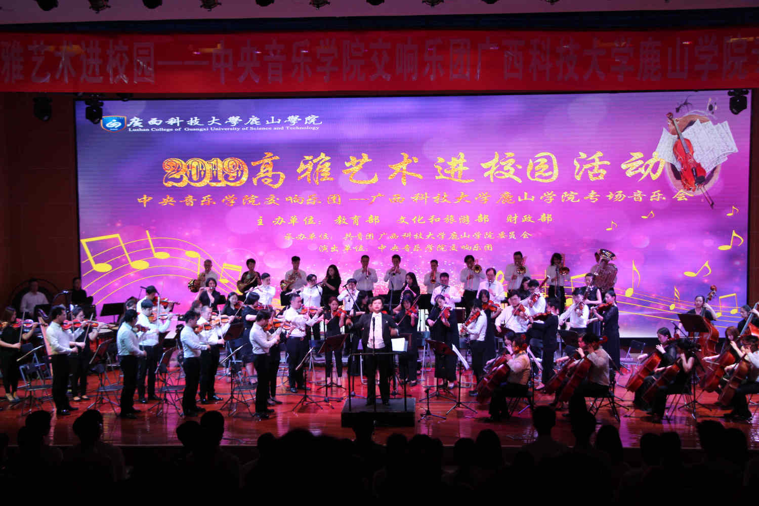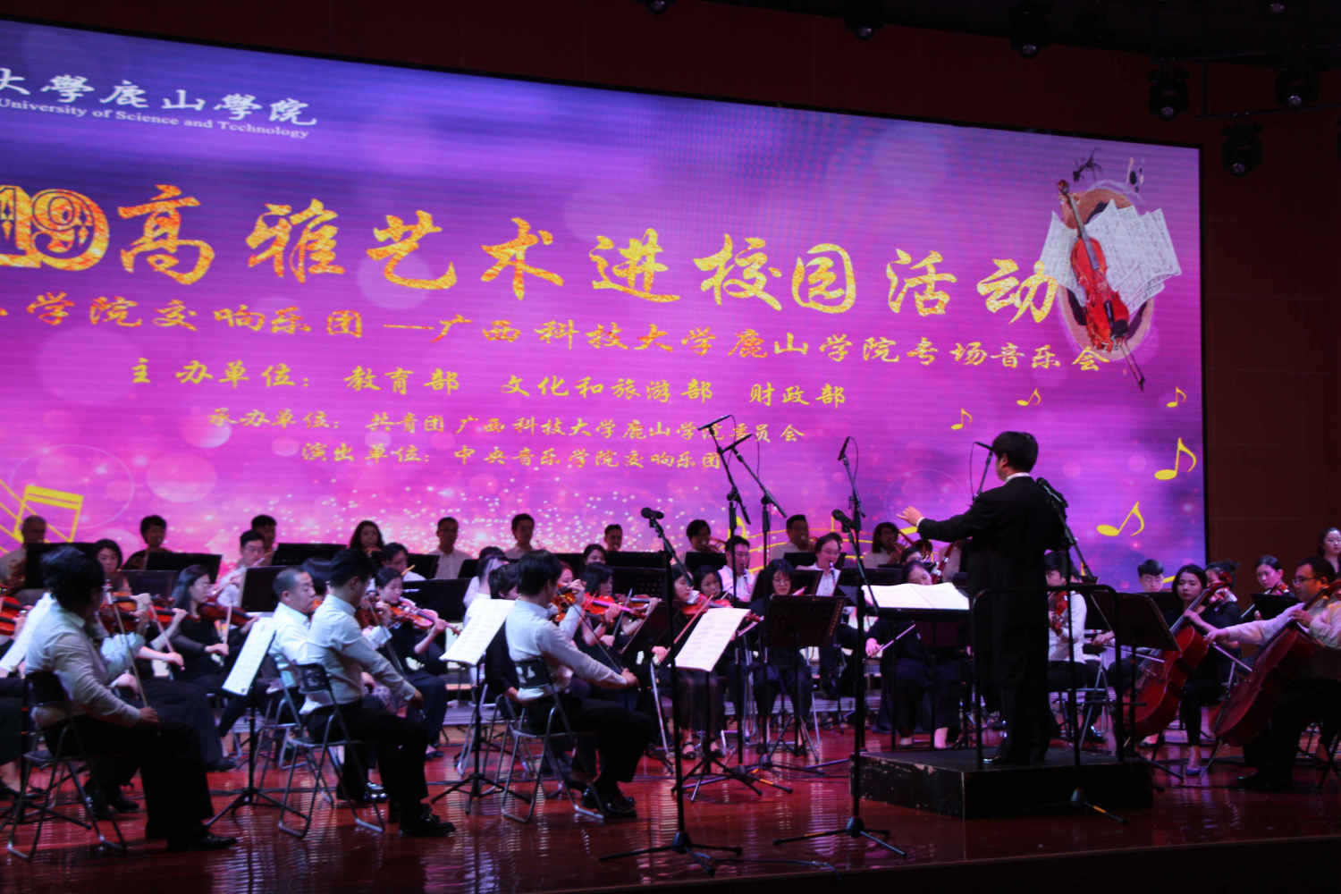 为深入贯彻落实习近平总书记关于教育的重要论述和全国教育大会精神,全面加强和改进学校美育,把高雅艺术进校园作为学校美育培根铸魂的重要载体,切实提高学生审美和人文素养。5月14日-17日,kaiyun体育网页登录入口交响乐团“高雅艺术进校园”巡演走进广西科技师范学院、广西科技大学鹿山学院、柳州铁道职业技术学院三所高校,为近7000位师生送去四场音乐盛宴。
