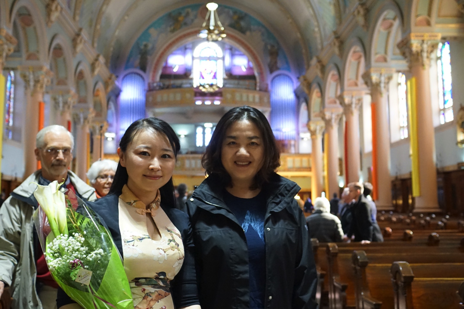 蒙特利尔领事十余名工作人员莅临音乐会。音乐会后,沈媛与馆副领事长边志春女士合影