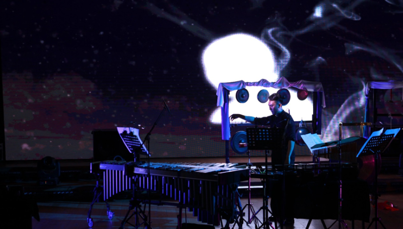 作为本场音乐会的唯一的女性作曲家,周佼佼的作品蕴含着深厚的功力和张力,现场四维立体影像与电子音乐的完美结合,给观众留下了非常深刻的印象。